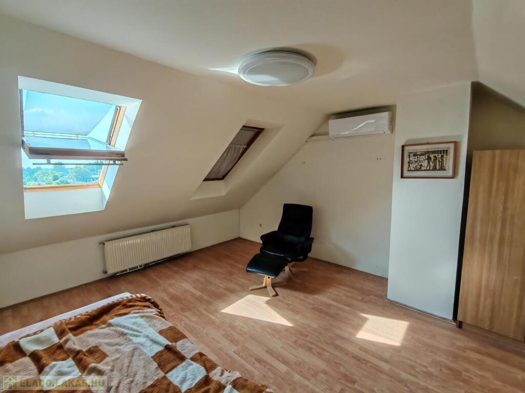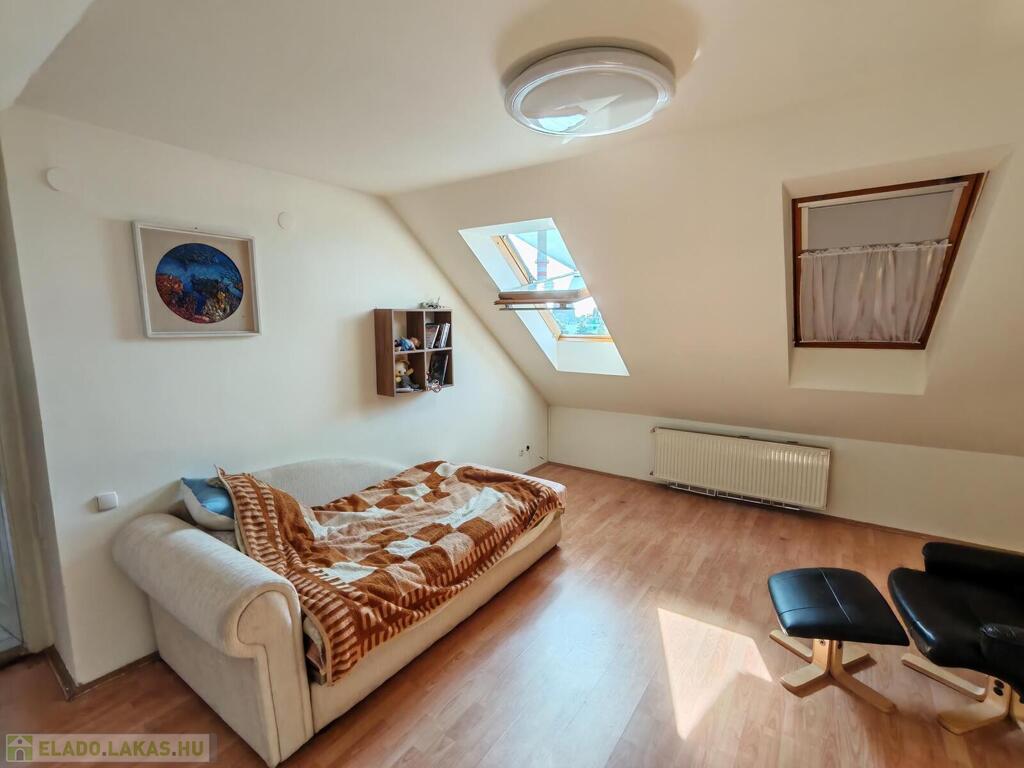 felső szint: előtér, 2 hálószoba, tágas fürdőszoba káddal és WC-vel