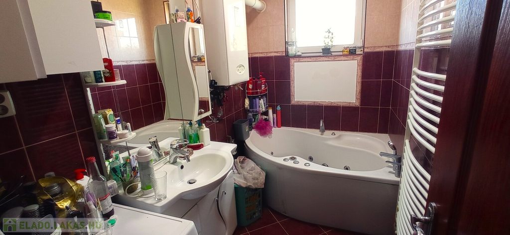 - szép világos fürdőszoba, pezsgőfürdős fürdőkáddal