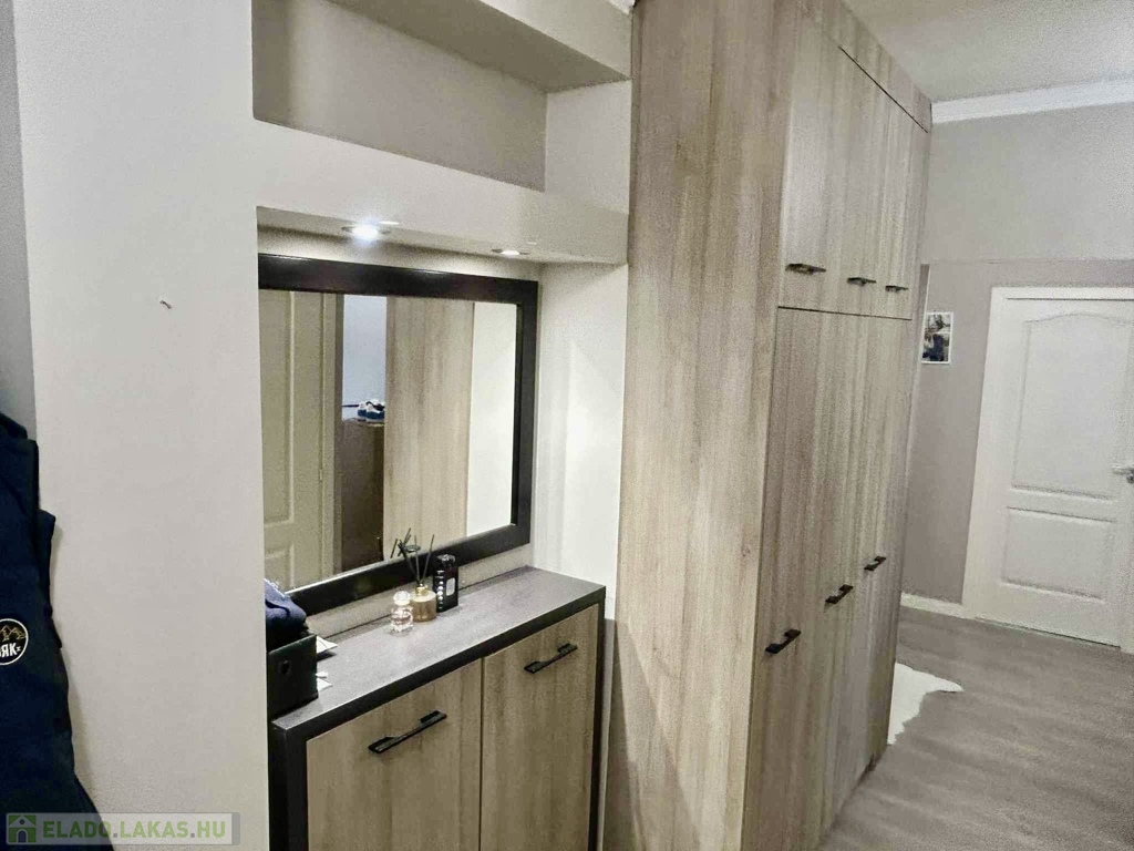 Nyíregyházán, a Család utcán eladó egy igényesen, magas minőségben felújított, 65 nm-es, 2+1 szobás, külön nyíló szobákkal rendelkező lakás egy 4 emeletes társasház 4. emeletén. Az otthon minden részletében a kényelmet és az esztétikumot tükrözi: modern, egyedi tervezésű, beépített és gépesített konyhabútorral rendelkezik, amelybe hűtő és mosogatógép is beépítésre került. A lakásban két helyiségben klíma gondoskodik a kellemes hőmérsékletről, a praktikus gardróbszekrények pedig kényelmes tárolási lehetőséget biztosítanak.