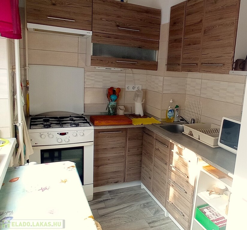 A lakás redőnyözött műanyag nyílászárókkal felszerelt, fűtését egy 2022-ben kicserélt egyedi gázkazán biztosítja radiátoros fűtési rendszerrel. A felújított állapotú ingatlan, szobái laminált parkettával burkoltak a többi helyiség pedig járólappal, a fürdőszobában zuhanykabin került beépítésre és itt kapott helyet a WC is. A szép világos keleti-nyugati fekvésű lakás konyhájában jó állapotú konyhabútor található, és egy külön kamra is tartozik hozzá.