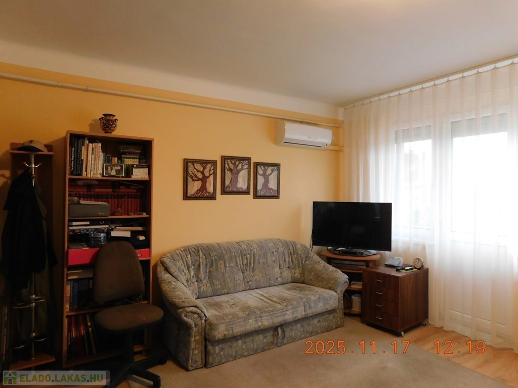 A környék kiemelkedően jó: minden fontos szolgáltatás pár perc sétára található (Városháza 5 p, Színház 2 p, Piac 5 p, busz 1 p).A lakás frissen felújított: új elektromos hálózat, modern bejárati ajtó, klíma, redőnyös műanyag ablakok szúnyoghálóval, valamint új gázkonvektoros fűtés. Két loggia is tartozik hozzá.