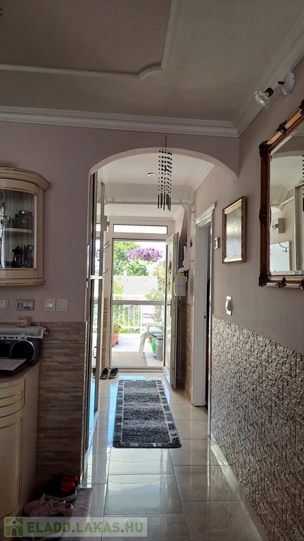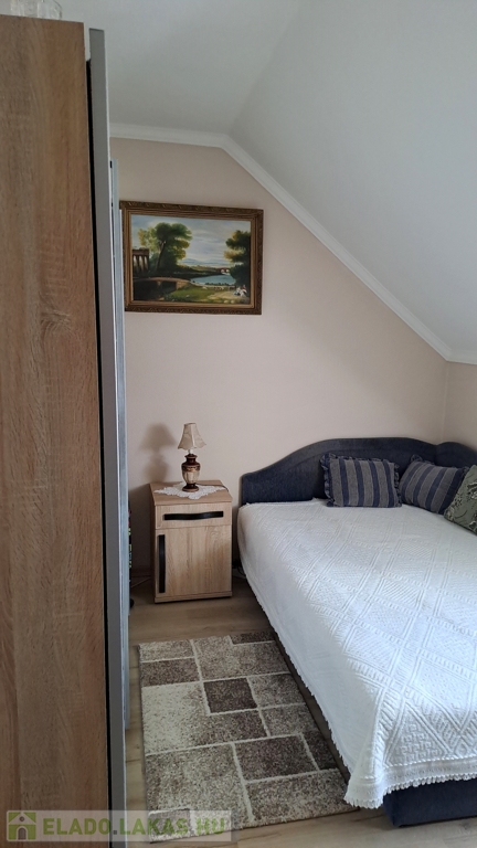 Alsó szint: nappali, 2 hálószoba, konyha + étkező, kamra, fürdőszoba (káddal és zuhanykabinnal), külön WC