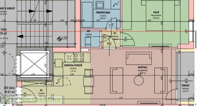 Az ingatlan praktikus elosztású, világos terekkel rendelkezik. A nappaliból közvetlen kijárat nyílik a 3,7 m²-es teraszra, amely kellemes kikapcsolódást biztosít.