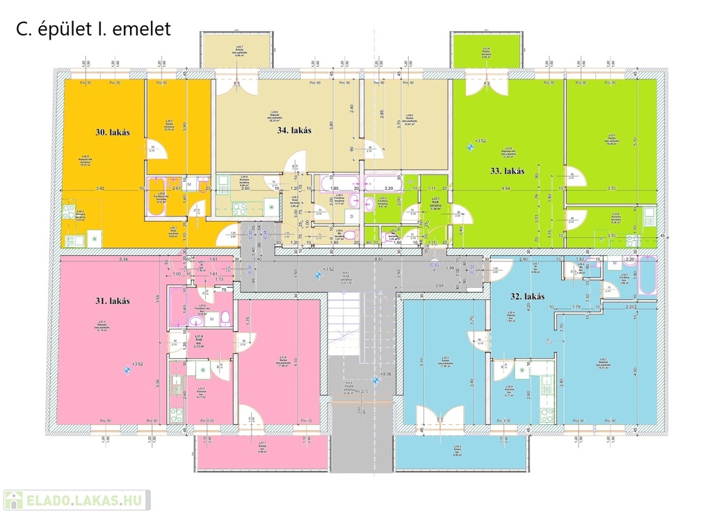 L31: 1. emelet, 77,32 m2 (8,73 erkély) N+1 szoba Ár: 71.907.600 Ft L32: 1. emelet, 75,22 m2 (8,87 erkély) N+1 szoba Ár: 69.954.600 FtL33: 1. emelet, 70,68 m2 (4,77 erkély) N+1 szoba Ár: 65.732.400 FtL36: 2. emelet, 73,61 m2 (8,4 erkély) N+1 szoba Ár: 68.457.300 FtL37: 2. emelet, 71,37 m2 (8,4 erkély) N+1 szoba Ár: 66.374.100 FtL38: 2. emelet, 70,41 m2 (4,5 erkély) N+1 szoba Ár: 65.481.300 FtL40: 3. emelet, 62,9 m2 (11,92 erkély) N+1 szoba Ár: 58.497.000 FtL41: 3. emelet, 59,64 m2 (13,75 erkély) N+1 szoba Ár: 55.465.200 FtL42: 3. emelet, 58,74 m2 (13,75 erkély) N+1 szoba Ár: 54.628.200 FtL43: 3. emelet, 63,1 m2 (11,92 erkély) N+1 szoba Ár: 58.683.000 Ft