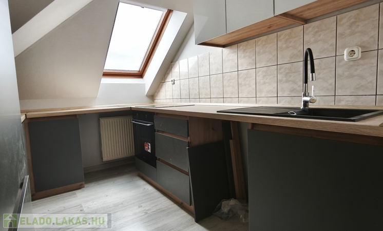 Korszerű gépészet: Egyedi gázfűtés újszerű kazánnal, Velux tetőtéri és műanyag nyílászárók.