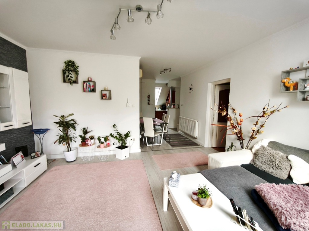 Az ingatlan praktikus elrendezésű, külön gardróbhelyiséggel, erkéllyel rendelkezik, így ideális választás családoknak vagy akár befektetésnek is. A lakásban műanyag és hőszigetelt fa nyílászárók, valamint járólap és laminált parketta burkolatok találhatók.