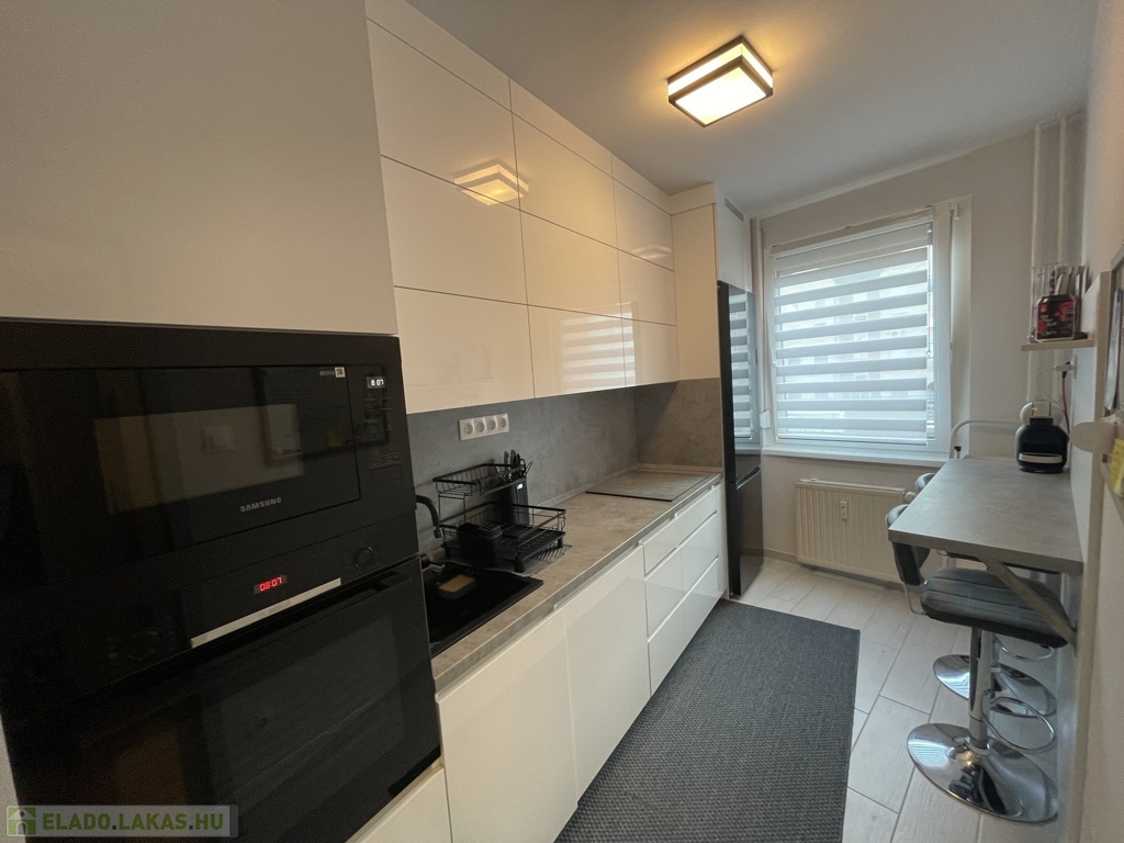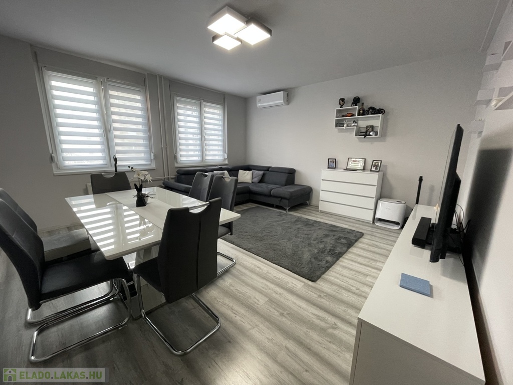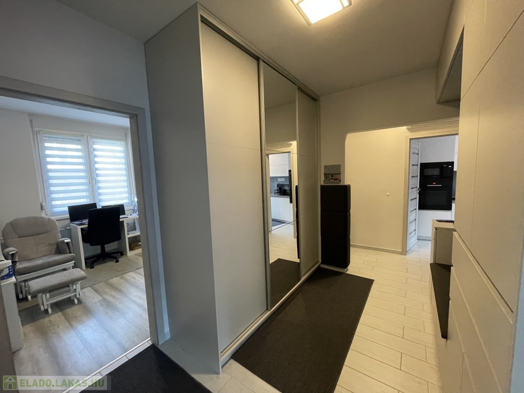 Korzó üzletház közvetlen szomszédságában eladó egy 87 m²-es, első emeleti, erkélyes, 3 szoba + nappalis lakás, amely vezeték szintig felújított, igényes, modern kialakítással várja új tulajdonosát.