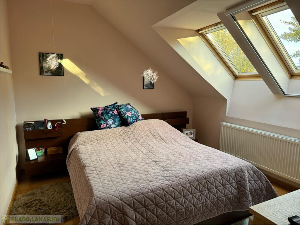 Az alsó szinten amerikai konyhás nappali, külön szoba, tágas fürdőszoba, külön WC és egy praktikus dolgozósarok kapott helyet. Az egyedi tervezésű, prémium belső lépcső a lakás egyik meghatározó eleme. A felső szinten 2 teljes értékű szoba és egy fürdőszoba WC-vel található.