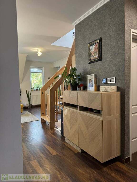 Az ingatlan tágas, világos terekkel és átgondolt elrendezéssel biztosít kényelmes otthont két szinten.