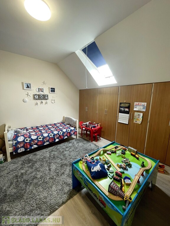 Alsó szint: nappali, 2 hálószoba, külön konyha, fürdő, WC, erkélyFelső szint: 3 hálószoba, fürdő, WC, erkély