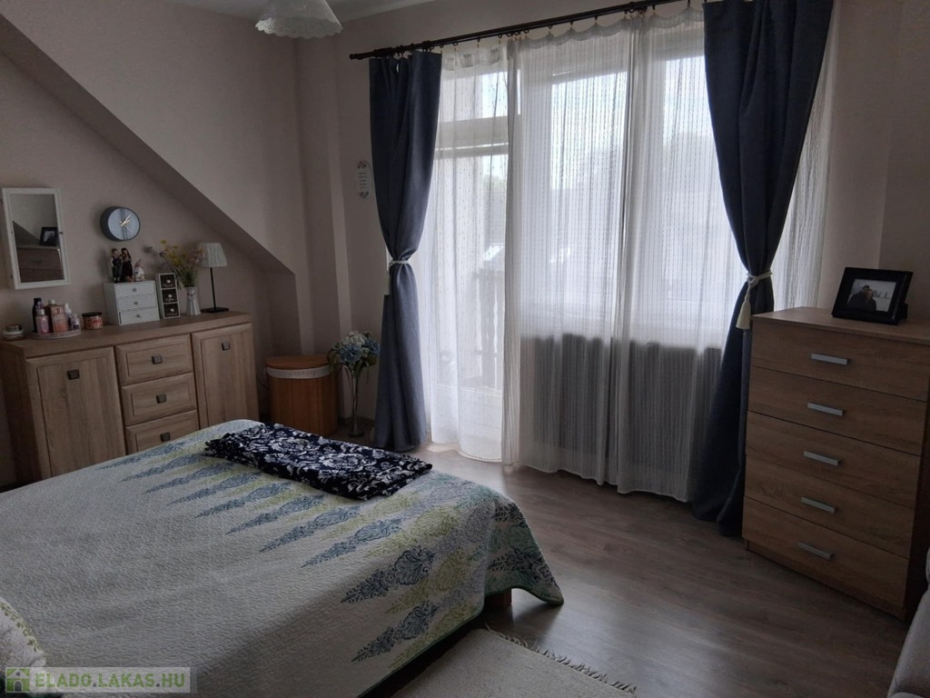 Felső szint: 3 hálószoba, fürdőszoba, WC, erkély
