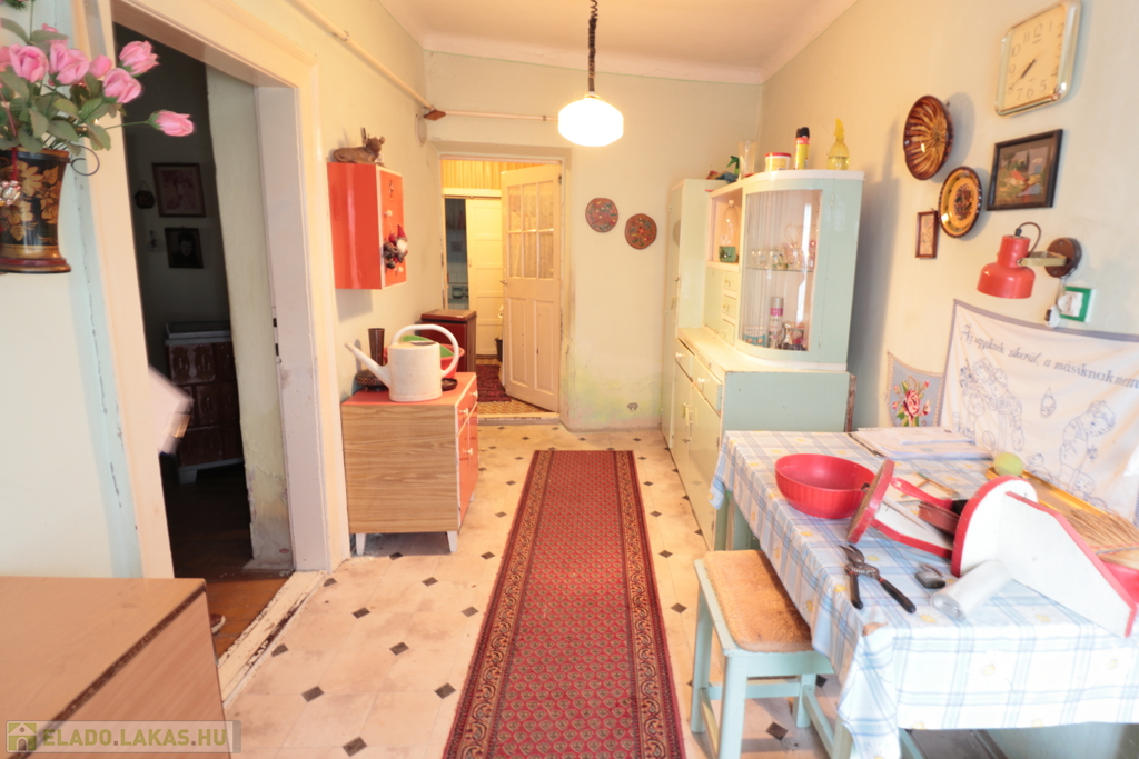 A másik lakás felújításra vár, igény szerint egybe is nyitható a szomszéddal (két utcafronti szoba, konyha, fürdő, előszoba, gázkonvektoros fűtés)