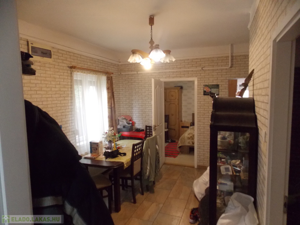 A földszinten található egy 25 m2-es nagy szoba, 19 m2-es előtér, 5 m2 fürdő+wc, 7 m2 félszoba, 7m2 konyha+ 3 m2 kamra.