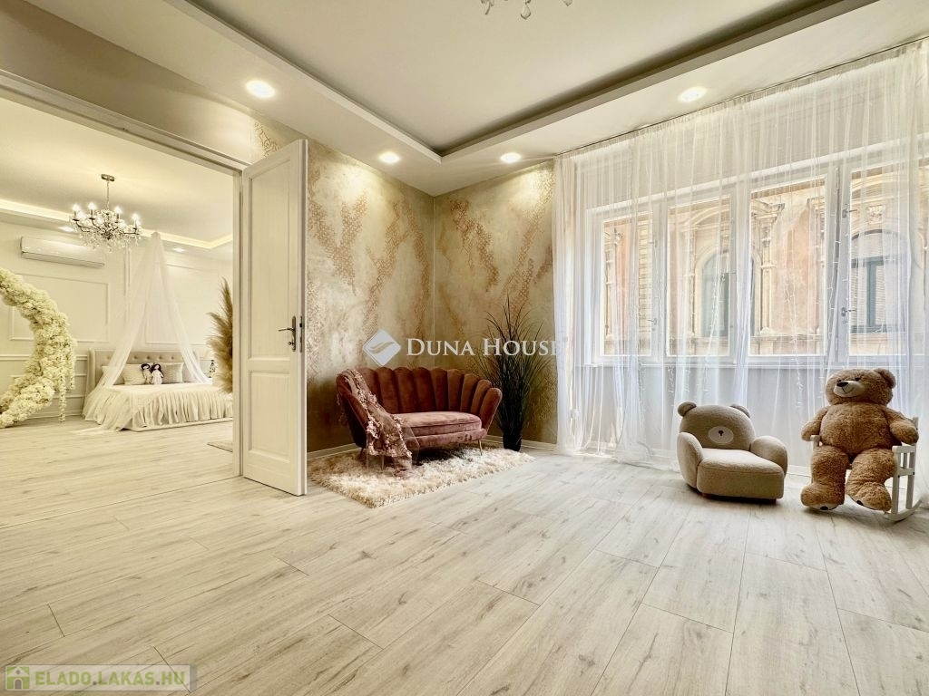 Impozáns, nagy polgári prémium lakás eladó Pécs történelmi belvárosának szívében sokoldalú hasznosítási lehetőségekkelPécs egyik legszebb részén, a patinás történelmi belvárosban kínálunk megvételre egy első emeleti, kivételes adottságokkal rendelkező lakást, amely teljes körű, prémium minőségű felújításon esett át az elmúlt években.A lakás jelenleg egy jól működő, bejáratott fotóstúdióként üzemel, amely stabil ügyfélkörrel, kiforrott arculattal és rendszeres bevétellel rendelkező vállalkozásként funkcionál. Az ingatlan jelenlegi kialakítása, a minőségi világítástechnika és a belső terek professzionális kialakítása a kreatív iparág igényeire szabott. A vevő akár azonnal folytathatja a tevékenységet a meglévő formájában, így az ingatlan nemcsak értékes tér, hanem jövedelmet hoz azonnal.Az ingatlan tágas terekkel, elegáns megjelenéssel és minőségi belsőépítészeti megoldásokkal rendelkezik, egyaránt kiváló választás lehet reprezentatív lakásnak, üzleti célú hasznosításra, vagy akár befektetésként, rövid távú kiadásra (Airbnb).Ezen kívül az elrendezés és az ingatlan színvonala lehetővé teszi olyan tevékenységek kialakítását is, mint esztétikai - szépség szalon, orvosi vagy természetgyógyászati magán rendelő, pszichológiai vagy coaching praxis, illetve egyéb magas színvonalú szolgáltatást nyújtó vállalkozás működtetése. A belvárosi elhelyezkedés és a reprezentatív környezet kifejezetten vonzóvá teszi ezeket a felhasználási lehetőségeket befektetők számára is.Lakásként visszaalakítható, de három különálló apartman kialakítása is elő van készítveA lakás jelenleg egyetlen egységként funkcionál, de szerkezetileg és gépészetileg úgy került kialakításra, hogy akár három külön bejáratú lakássá is könnyedén átalakítható. A víz-, villany-, konyhai és fürdőszobai kiállások ehhez már rendelkezésre állnak, így minimális átalakítással kiváló befektetési lehetőségként funkcionálhat a belváros szívében, ahol az ilyen adottságú ingatlanok ritkaságszámba mennek.Hangulatos udvar, kilátással a TV-toronyraAz épület gondozott belső udvara kellemes közösségi térként is szolgál, ahonnan szép kilátás nyílik a város egyik ikonikus jelképére, a TV-toronyra ez az apró részlet is hozzájárul az ingatlan különleges atmoszférájához.Főbb jellemzők:Elhelyezkedés: Pécs történelmi belvárosa, frekventált környezetbenSzint: Első emeletÁllapot: Teljes körűen, prémium minőségben felújítvaFunkció: Jelenleg egybenyitott térként funkcionál, de gyorsan átalakítható 3 önálló apartmanná vagy visszaalakítható nagyvonalú lakássáUdvar: Rendezett belső udvar, kilátással a TV-toronyraHasznosítás: Kiváló választás saját otthonnak, elegáns lakásként, rövid távú kiadásra (Airbnb), vagy akár vállalkozás céljára is(pl. fotóstúdió, esztétikai szalon, rendelő, magánpraxis vagy iroda)Ez az ingatlan valódi kuriózum a pécsi belvárosban: modern és sokoldalúan alakítható, ugyanakkor megőrzi a hely szellemiségét és eleganciáját.Ne maradjon le erről a különleges lehetőségről vegye fel velünk a kapcsolatot még ma, és tekintse meg személyesen!