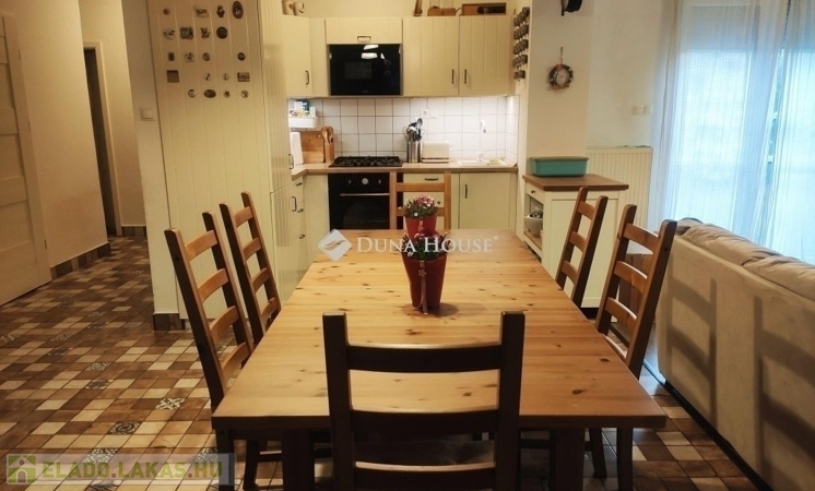 Eladásra kínálunk egy egyszintes, 130m2-es , tégla szerkezetű, kertkapcsolatos lakást, amely nem csak egy lakóhely, hanem egy otthon, ahol az élet minden szépsége kiteljesedhet. A ház 1 nappalival és további 4 szobával rendelkezik, amelyek tágasak és világosak, köszönhetően a jól megtervezett elrendezésnek.Az ingatlan a kertkapcsolatnak köszönhetően különleges lehetőséget kínál a szabadtéri tevékenységekhez. A kert gondosan ápolt, tökéletes hely a kikapcsolódáshoz, a gyerekek játékára vagy akár egy családi barbecue est szervezésére.Belépve a tágas előszobába, azonnal érezhető a nyugodt, családias hangulat, amit a természetes fény és a modern, mégis időtálló belső kialakítás is erősít. A nappali a központi helyiség, ahol a család és a barátok összegyűlnek, hogy kellemes időt töltsenek együtt. A konyha és az étkező egy légtérben helyezkedik el, ideális helyszín a közös főzésekhez és étkezésekhez.