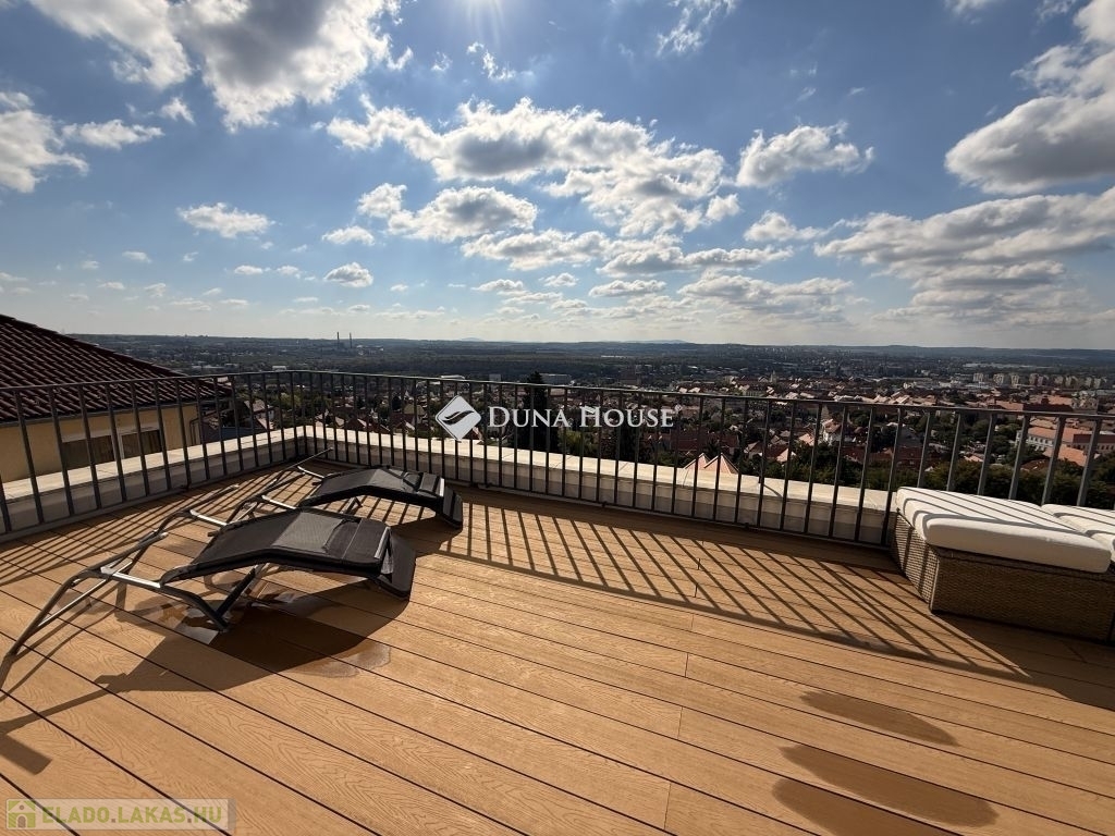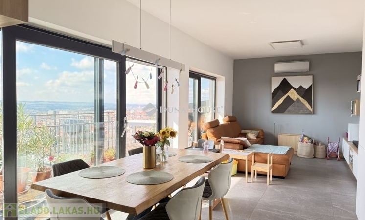 Pécs-Mecsekoldal jól megközelíthető részén, a Havihegyen eladó egy 2021-ben épült, ÖRÖKPANORÁMÁS, belső kétszintes, 80 m2 lakótérrel rendelkező, amerikai konyha nappali+ 2 hálószoba, fürdő-wc, vendég wc elosztású lakás dupla terasszal(+60m2), 4 m2-es tárolóval, 19m2-es teremgarázshellyel és akár a teljes berendezéssel együtt!A két lakásos társasház prémium minőségben került kivitelezésre, falai 30-as Porotherm klíma téglából épültek és 10 cm-es grafitos szigetelést kaptak. Fűtése kondenzációs kombi kazánról padlófűtéssel üzemeltethető és rendelkezésre áll szintenként egy-egy GREE 3,5kW-os hűtő fűtő klíma is.Extrák:- vízlágyító és víztisztító berendezés- elektromos redőnyök szúnyoghálóval- süllyesztett tolóajtó- Hörmann elektromos garázskapu- Servo-drive(önzáró) konyhabútor, beépített AEG gépekkel, borhűtő- magas minőségű burkolatok, egyedileg gyártott beépített bútorok, Villeroy & Boch szaniterek, Hansgrohe szerelvények- Szél&fényérzékelős automata napellenző- jakuzzi kiállás- riasztó előcsövezésAz ingatlan gyorsan költözhető!