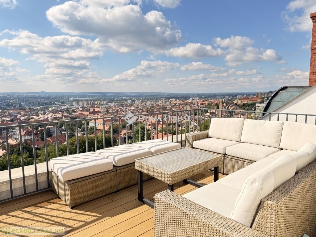 Pécs-Mecsekoldal jól megközelíthető részén, a Havihegyen eladó egy 2021-ben épült, ÖRÖKPANORÁMÁS, belső kétszintes, 80 m2 lakótérrel rendelkező, amerikai konyha nappali+ 2 hálószoba, fürdő-wc, vendég wc elosztású lakás dupla terasszal(+60m2), 4 m2-es tárolóval, 19m2-es teremgarázshellyel és akár a teljes berendezéssel együtt!A két lakásos társasház prémium minőségben került kivitelezésre, falai 30-as Porotherm klíma téglából épültek és 10 cm-es grafitos szigetelést kaptak. Fűtése kondenzációs kombi kazánról padlófűtéssel üzemeltethető és rendelkezésre áll szintenként egy-egy GREE 3,5kW-os hűtő fűtő klíma is.Extrák:- vízlágyító és víztisztító berendezés- elektromos redőnyök szúnyoghálóval- süllyesztett tolóajtó- Hörmann elektromos garázskapu- Servo-drive(önzáró) konyhabútor, beépített AEG gépekkel, borhűtő- magas minőségű burkolatok, egyedileg gyártott beépített bútorok, Villeroy & Boch szaniterek, Hansgrohe szerelvények- Szél&fényérzékelős automata napellenző- jakuzzi kiállás- riasztó előcsövezésAz ingatlan gyorsan költözhető!