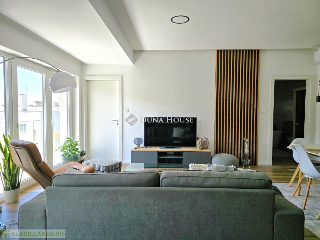Pécs mecsekoldali részén eladó egy 2023-ban épült, 1. em-i, 106 nm-es lakótérrel rendelkező, 3 szoba+ amerikai konyha-nappali elosztású, dupla komfortos, minőségi anyagokból készült, sok extrával rendelkező, gáz kondenzációs kazánnal fűtött PENTHOUSE lakás, össz. 60 NM-ES PANORÁMÁS TERASSZAL.