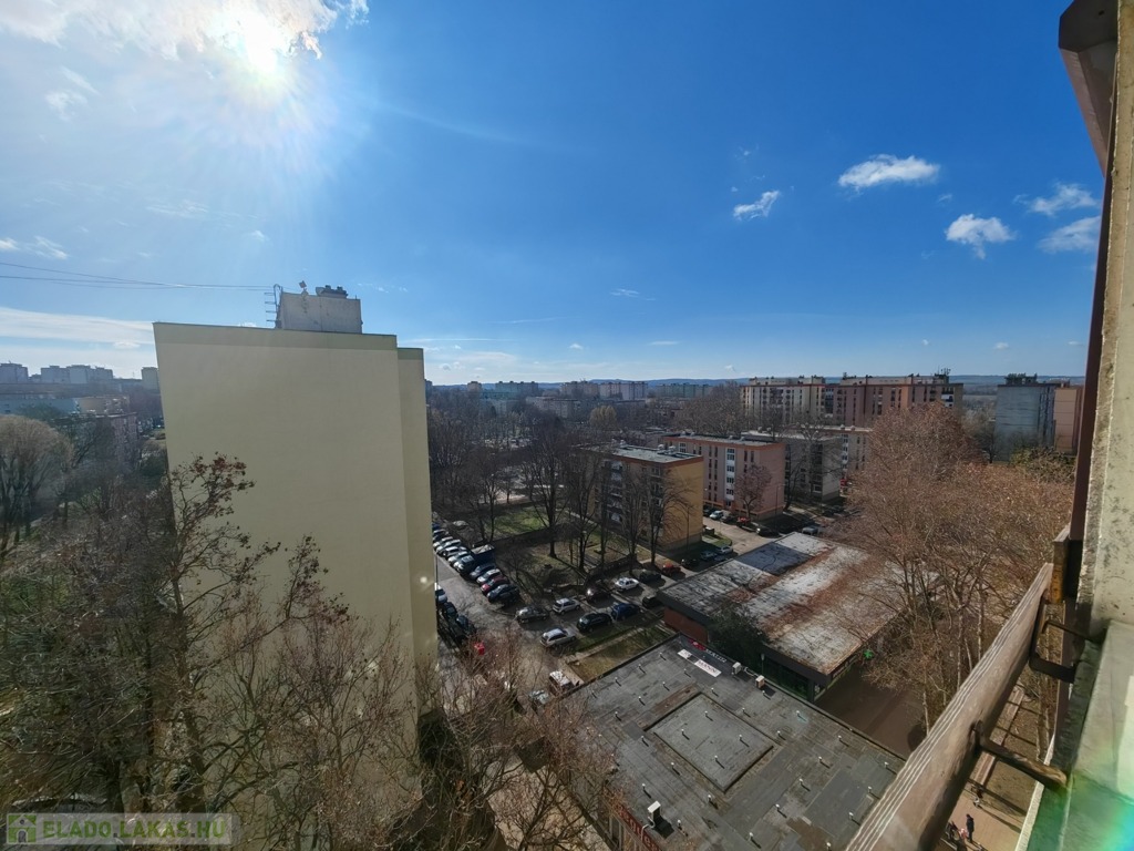 Pécsett az Éva utcában, 10 emeletes szigetelt társasház 10. emeletén, örökpanorámás, 63m2-es, 3 szobás, erkélyes lakás eladó!