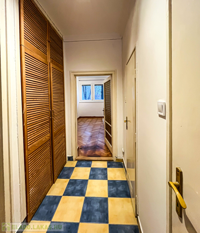 Az ingatlan földszinten található, elrendezése kiváló: 2 külön nyíló szoba, konyha, külön fürdő és WC, előszobában beépített szekrények, és egy tároló helység.