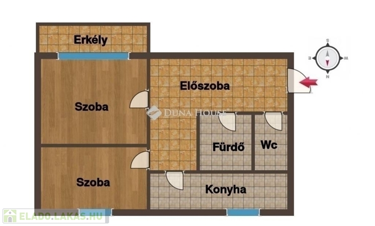 Észak–Dél tájolás, ennek köszönhetően világos, jól átszellőztethető