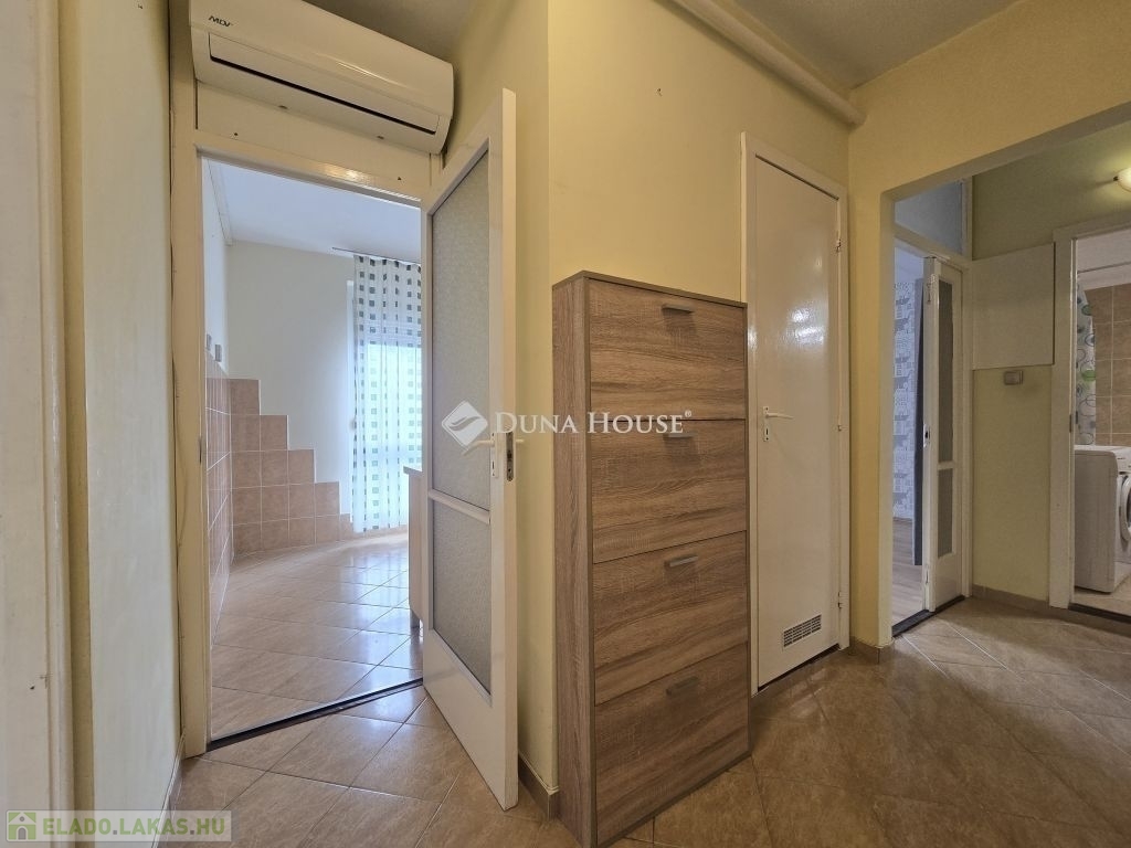 A nyílászárók műanyagok, szúnyoghálóval és redőnnyel ellátottak, a lakásban pedig klíma gondoskodik a kellemes hőmérsékletről egész évben.