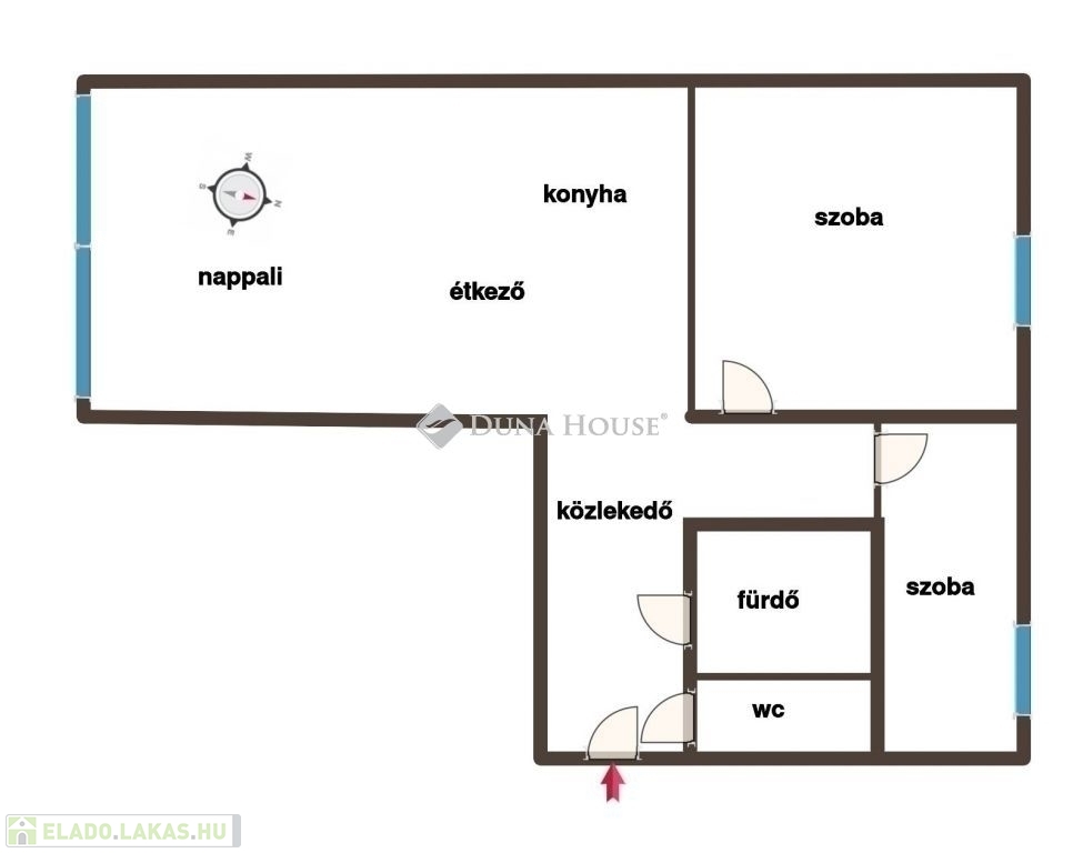 A szigetelt épületben lévő, amerikai konyha-nappali + két szobás, műanyag nyílászárós, klímával szerelt lakás. A nagyobbik 24 m2-es szoba lett átalakítva nappali + konyhává, az eredeti konyhából szoba lett.