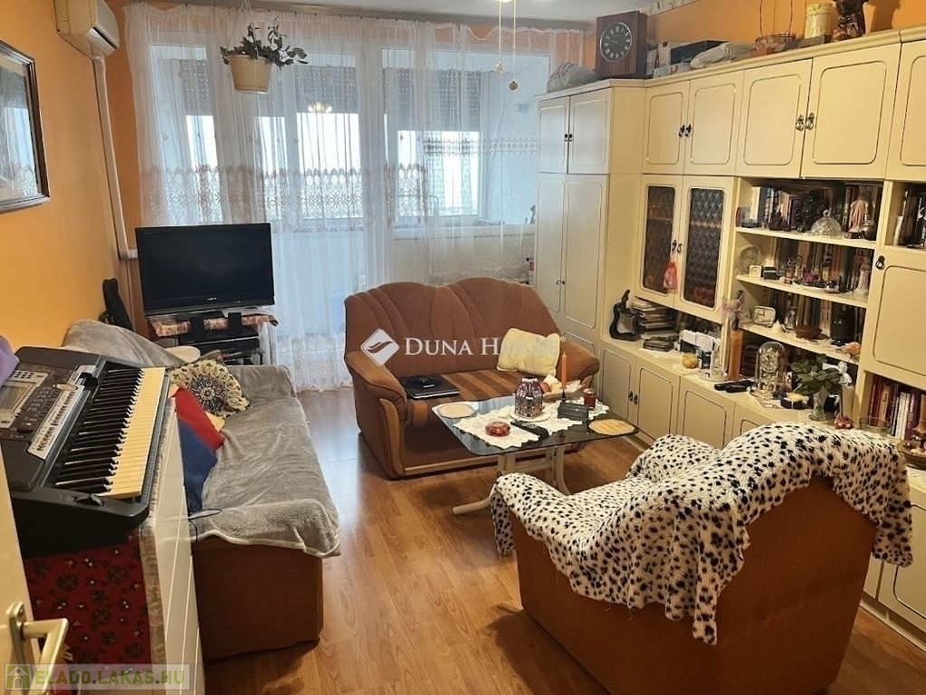 Aidinger János úton eladó egy 2 szobás,50nm-es, 6. emeleti, erkélyes, jó állapotú panel lakás, szigetelt épületben. A nyílászárok nemrégiben cserélve lettek műanyagra, redőnnyel-rovarhálóval ellátottak, bejárati ajtó is cserélve, és a nappali klimatizált.