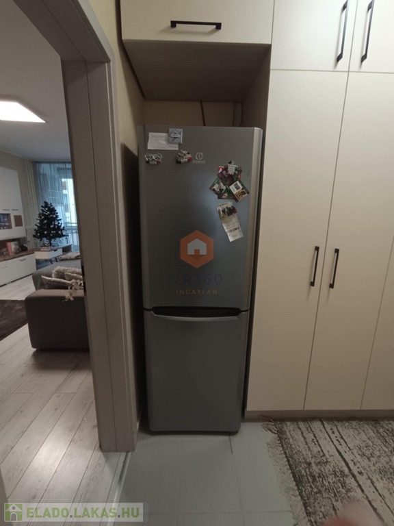 Az eladás részét képezik a beépített szekrények, a hűtőszekrény, valamint a teljes berendezés.