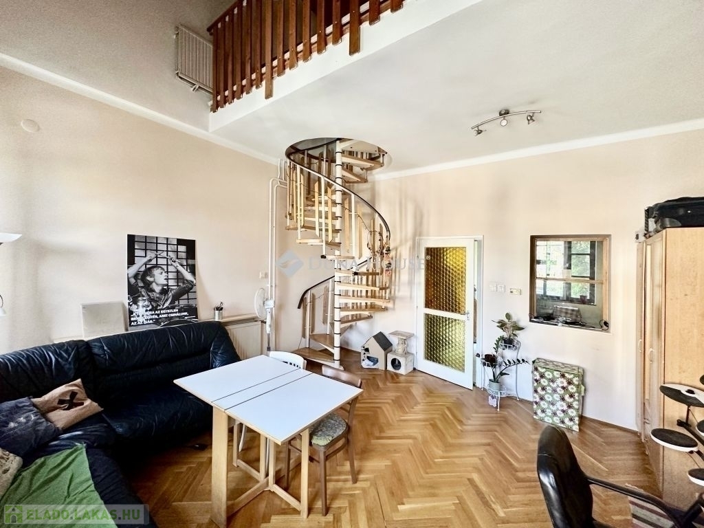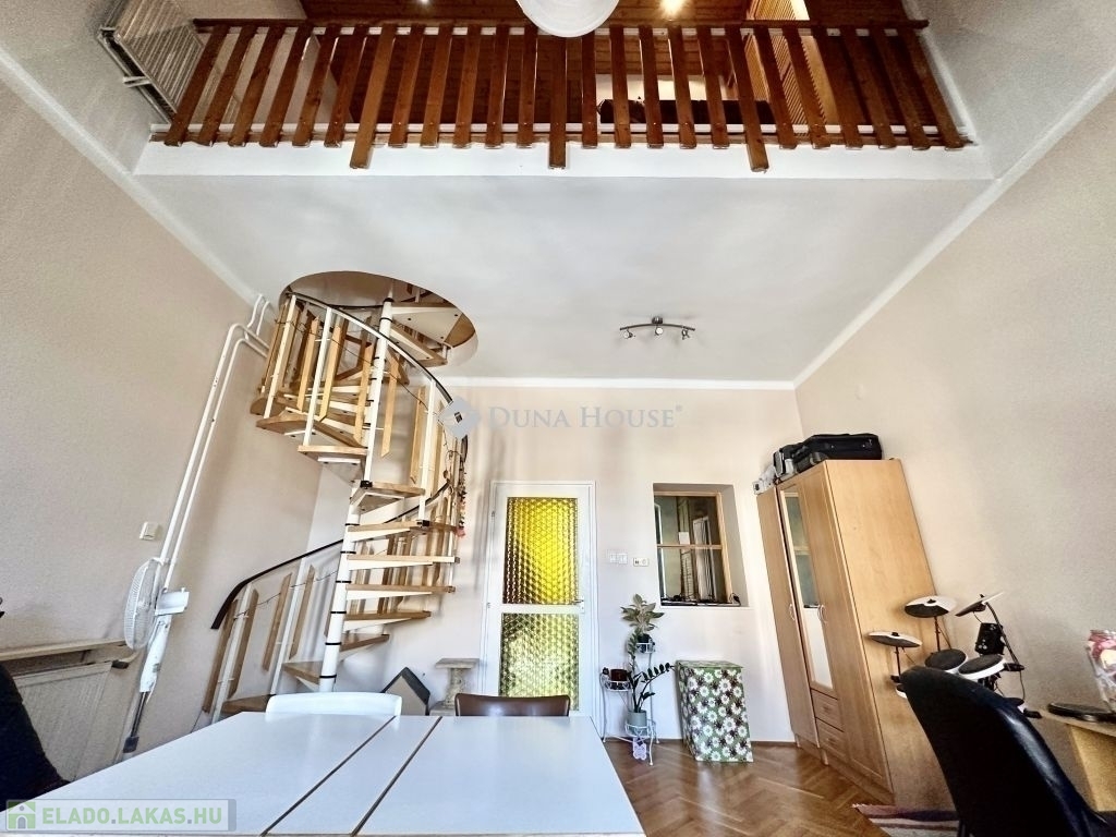 Eladó Pécs történelmi belvárosában, Nagy Flórián utcában két hálós galériás lakás kertkapcsolattal. Az ingatlan négy lakásos társasházban a belső és szélső oldalon helyezkedik el. A lakáshoz az utcafronti közös bejáraton és zárt folyosón keresztül, a zárt zöld füves és virágos mediterrán udvaron át jutunk be.61 m²-es, galériás és kertkapcsolaton kívül még tárolóval rendelkezik.A földszinten előszoba, fürdőszoba, konyha és tágas nappali, melyben a stabil tölgyfa csigalépcsőn keresztül az emeletre érve két szoba, a galérián beépített tároló szekrény található. A helyiségek közül a nappaliban és a szobákban meleg burkolat, a többiben pedig hideg burkolat van. A lakás gázfűtéses.A társasházban élő lakástulajdonosok mind régóta élnek itt, nem cserélődtek, szeretnek itt lakni. Az ingatlan igazi értékét a műemlék épület, a mediterrán kert kapcsolat és a galériás kialakítás adja.A ház előtt közvetlenül lehet parkolni engedéllyel, vagy bérlettel.A lakás alacsony rezsi költségű melyet közös költség nem terhel.Fiatalok vagy fiatal családok számára ideális lakhatást tud biztosítani az egyedi igények szerint elvégzendő felújításokkal.