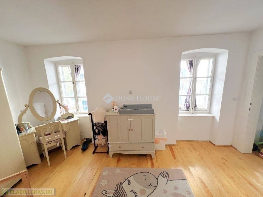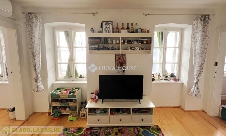 Pécs történelmi Belvárosában eladó egy 59 nm lakótérrel rendelkező, nappali+ 2 szoba elosztású, felújított állapotú, klímás, gáz kondenzációs kazánnal fűtött, polgári hangulatú lakás, ÜVEGEZETT VERANDÁVAL, SAJÁT 50 NM-es KERTKAPCSOLATTAL, fedett terasszal, fűszerkerttel. Az ingatlan udvari elhelyezkedéséből adódóan inkább kis ház jellegű, mint társasházi lakás, így közvetlen szomszédoktól is mentes! A lakás felújítása során igyekeztek megőrízni eredeti polgári jellegét ( eredeti fa külső-belső nyílászárók megtartásával és hajópadló helyreállításával). Keressen bizalommal, amennyiben kérdése lenne vagy megtekintené az ingatlant!