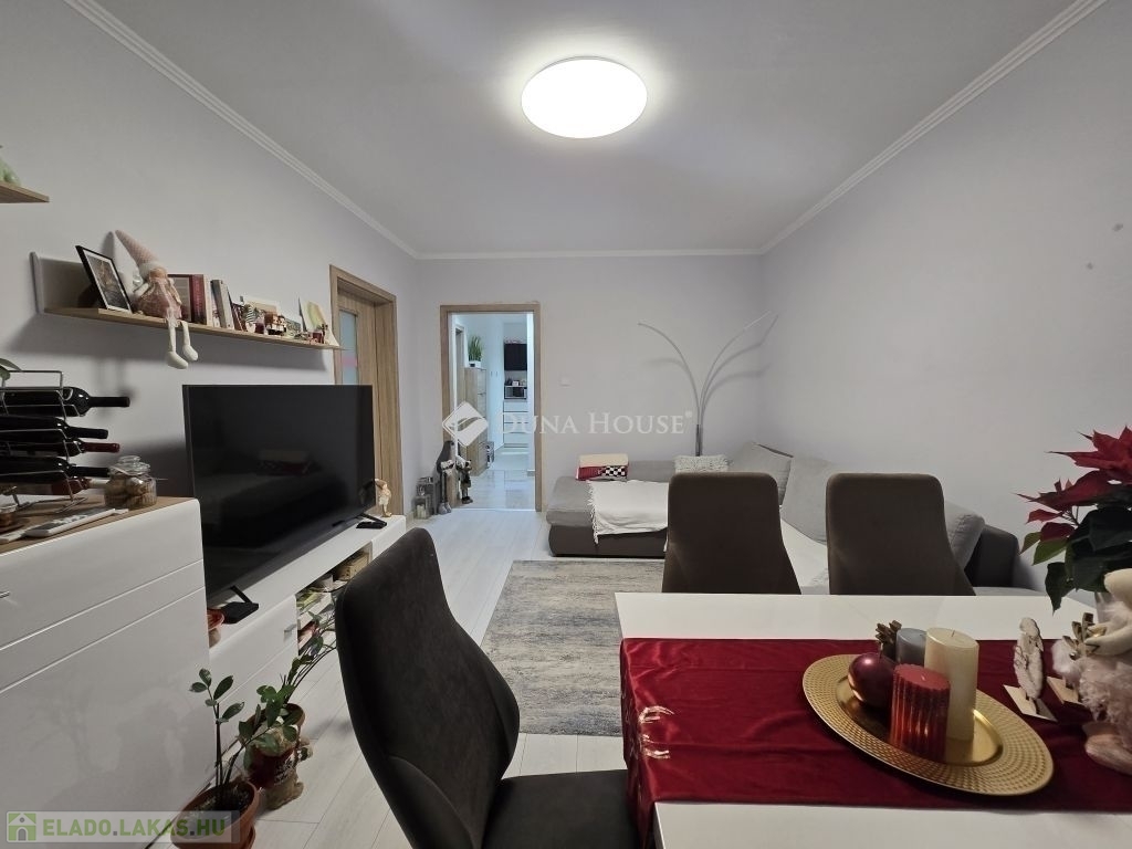 Világos, jó elosztású , teljesen felújított 3 szobás lakás!Pécs Kertváros központi részén, a Nagy Imre úton kínálok megvételre egy 63m²-es, háromszobás, kelet-nyugati tájolású, rendkívül világos és kényelmes elrendezésű lakást, panelprogramban felújított társasház 2. emeletén.A környezet nyugodt és barátságos, kiváló infrastruktúrával rendelkezik: a közelben található több bolt, gyógyszertár, orvosi rendelő, iskola, óvoda, valamint buszmegálló is minden fontos intézmény néhány perc sétával elérhető.A lakás főbb jellemzői:-63 m² alapterület-3 szoba-tágas erkély-K-Ny-i tájolás, napfényes helyiségek-Műanyag nyílászárók redőnnyel-Új bejárati és beltéri ajtók-Új konyhabútor, előszobabútor-felújított villany és vízvezeték-Klímával felszereltRendkívül kedvező rezsi:Téli fűtés + meleg víz: kb. 25.000 Ft/hóNyári rezsi (meleg vízzel együtt): kb. 9.000 Ft/hóPanelprogram elvégezve: a társasház szigetelt, a homlokzati nyílászárócsere megtörténtRendezett tulajdoni viszony, tehermentes, lakóközösség kiválóIdeális választás kis családoknak, akik fontosnak tartják a jó elosztást és a világos teret illetve fiatal párok számára, befektetőknek, akik jól kiadható lakást keresnek.Személyes megtekintésért várom hívását!