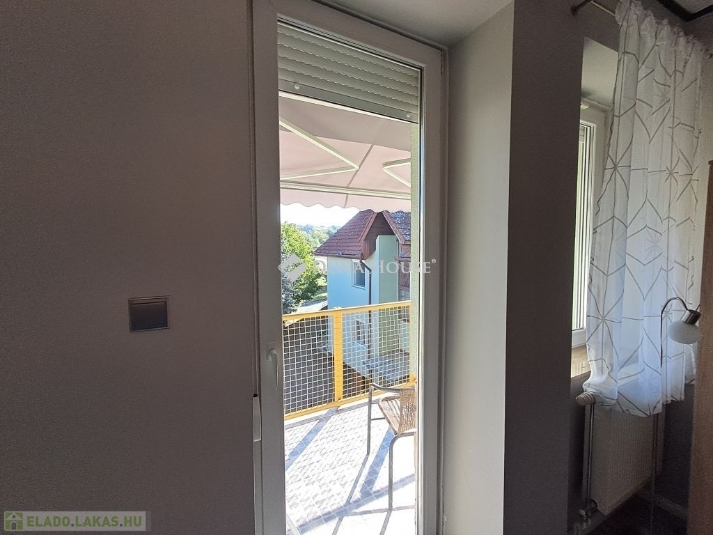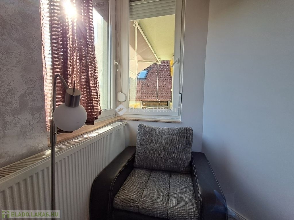 Eladó Pécs-Rózsadombon a Fáy András utcában 3 emeletes tégla építésű társasház legfelső szintjén egy átalakított, bruttó 70 m2-es (nettó 62 m2) erkélyes lakás, szigetelt épületben.Főbb jellemzők:-Kiválló állapotú műanyag nyílászárók-2+1 félszobás, nappali/amerikai konyhás, fürdő, wc elrendezés-Korszerű gázcirkó fűtésű, hűtő-fűtő klímával-Szúnyogháló/Redőnyökkel-Napellenző, áramkiállás az erkéllyen-Saját tároló-Gyönyörű Mecsekre néző panorámaAz ingatlan 1994-ben épült, karbantartott állapotú, a társasház rendezett, csendes lakóközösséggel rendelkezik, a parkolás az utcán díjmentesen megoldott. Az ingatlan infrastruktúrája kiváló: közelben található iskola, óvoda, üzletek, étterem, patika, buszmegálló, a belváros tömegközlekedéssel is gyorsan elérhető.Ideális választás fiatal pároknak, családoknak, vagy akár befektetésnek egyaránt.További információért, megtekintésért várom hívását!