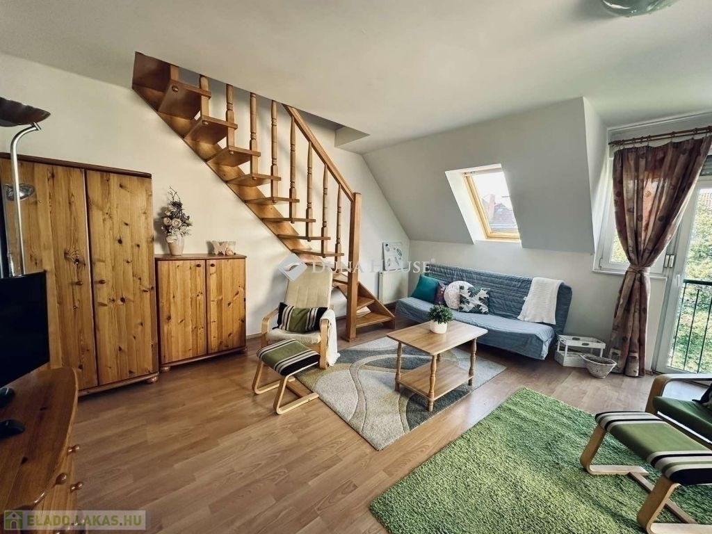 Belváros szívében, mégis csendes, zöldövezeti környezetben kínálunk megvételre egy 73 m2-es, jó állapotú , belső két szintes téglaépítésű lakást, liftes társasházban.Az ingatlan elosztását tekintve konyha-étkező, nappali , fürdő,-wc, spájz, előtér valamint a tetőtérben kialakításra került 1 hálószoba+külön wc.A lakás több oldalról tájolt, körbenapozott, így nemcsak világos és kellemes kilátással rendelkezik, hanem alacsony rezsijű is a gázcirkó fűtésnek köszönhetően.Az ingatlan érvényes Booking engedéllyel rendelkezik, így rövid és hosszú távú kiadásra egyaránt kiváló lehetőség.A környék zöldövezeti elhelyezkedése miatt ideális választás mind családoknak, mind fiatal pároknak.A belváros közelségének köszönhetően minden fontos szolgáltatás, bolt, iskola és közlekedési csomópont néhány perc sétával elérhető.További részletekért, megtekintésért hívjon bizalommal.