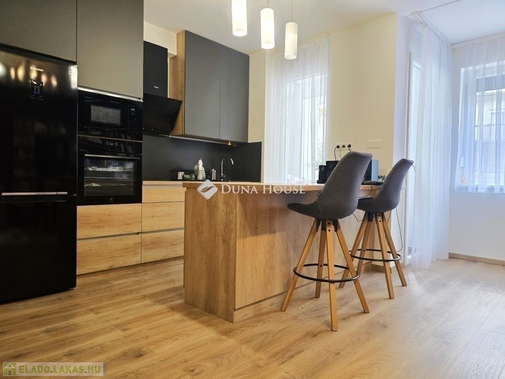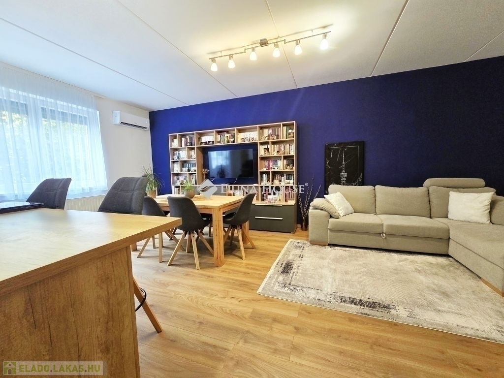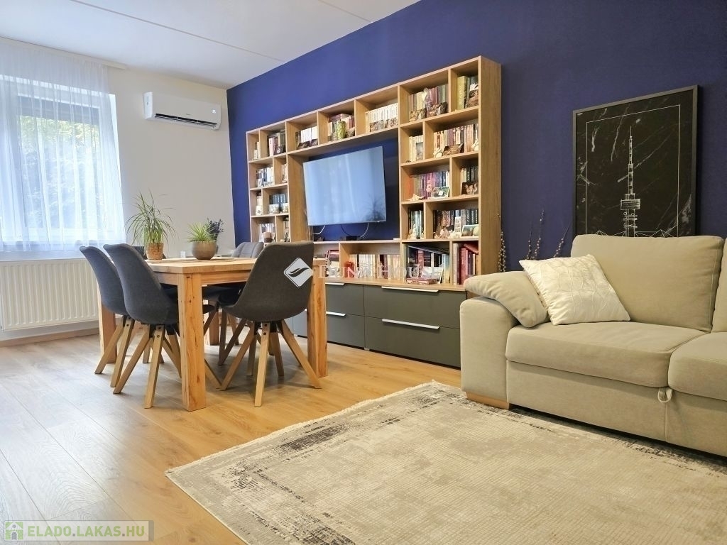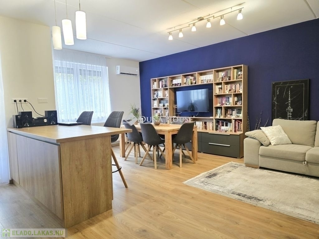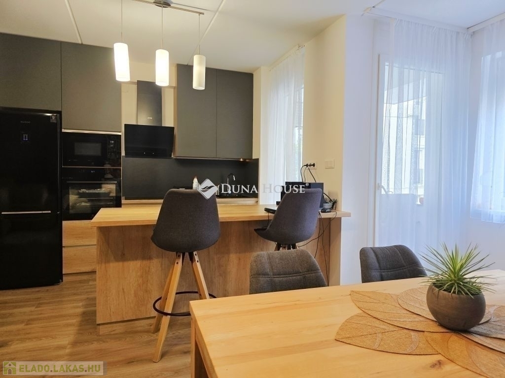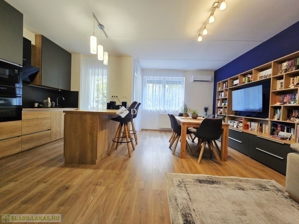 Pécs kertvárosi részén a Fellbach lakóparkban eladó egy magasföldszinti, 2021-ben felújított, tágas amerikai konyha-nappali+1 szoba elosztású, klímás, egyedi mérős, tégla lakás, saját tárolóval.A társasház újszerű, kamera rendszerrel védett és lifttel felszerelt. Parkolás a lépcsőház bejáratánál lehetséges(mindig van hely!), igény szerint a ház alatti teremgarázsban beálló is bérelhető!A lakáson 2021-ben a következő felújításokat végezték el:- új burkolatok- friss festés- fürdő és wc felújítása, új szaniterekkel, épített zuhannyal- új gépesített konyhabútor-szigettel- új beltéri ajtók- új dugaljak és kapcsolók- új klíma (2024-ben)A klíma, a konyhabútor beépített gépekkel és a beépített szekrények (fürdőszoba+2 db gardrób szekrény) a vételár részét képezik!I.ár: 61,9M Ft