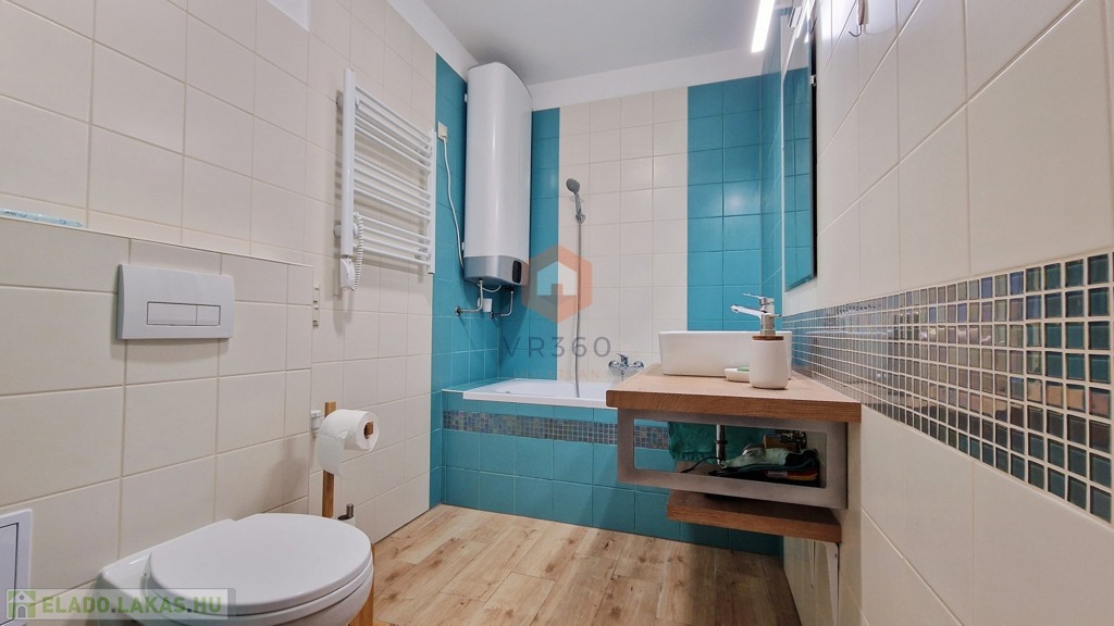 Fürdő: villanybojler biztosítja a melegvizet