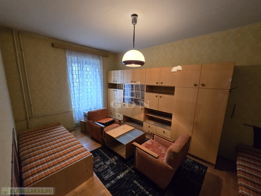 Az ingatlan 2,5 szobás elrendezésű, két tágasabb és egy kisebb szobával. Helyet kapott benne egy konyha, kamra (spájz), közlekedőtér, valamint egy fürdőszoba WC-vel. A nyílászárók műanyagra lettek cserélve, a fűtés távfűtéssel megoldott, emellett hűtő-fűtő klímaberendezés is rendelkezésre áll. A közművek rendezettek, az ingatlan tehermentes, 1/1 tulajdonban van, és a megvásárlást követően rövid időn belül birtokba vehető.
