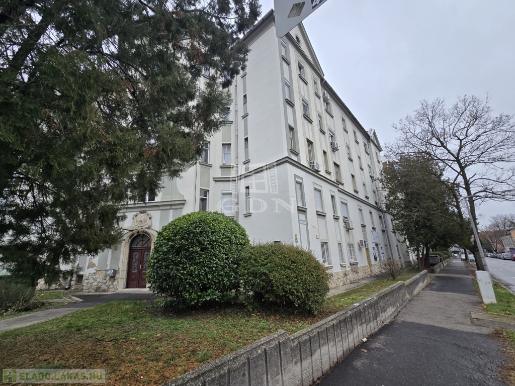 A lakás egy az 1950-es évek elején épült, rendezett, 12 lakásos társasházban található, csendes lakóközösséggel és tiszta, karbantartott lépcsőházzal. A társasház külön előnye, hogy két bejárattal rendelkezik: az egyik utcai, míg a másik egy parkosított belső udvarra nyílik, ahonnan közvetlenül elérhetők a garázsok is.
