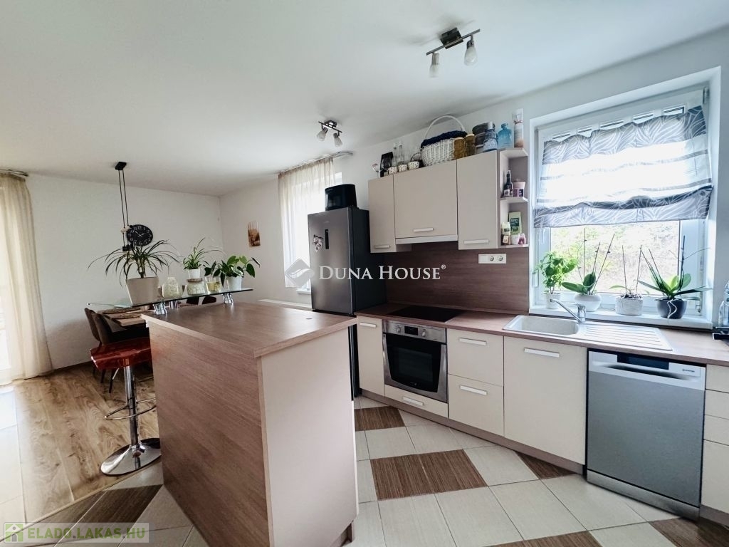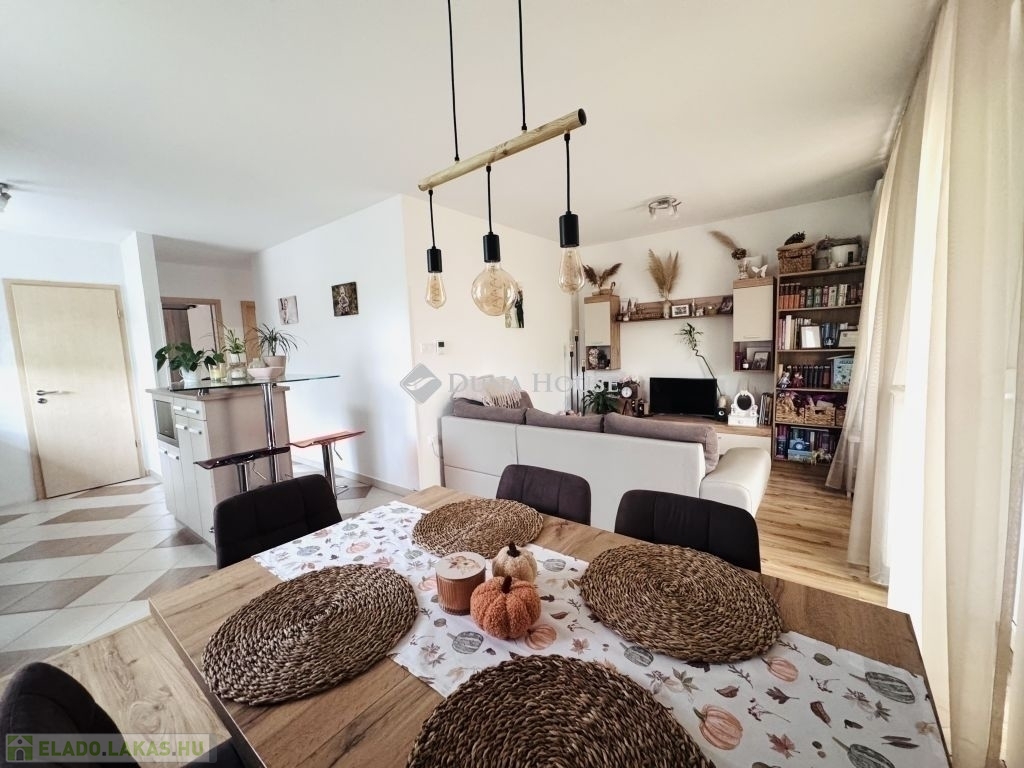 Eladó modern földszinti lakás nagy fedett terasszal és kertkapcsolattal Pécs, Rigóderi városrészPécs egyik kedvelt, csendes részén, a Rigóderi városrészben eladóvá vált egy 2008-ban épült, rendezett társasházföldszinti, fiatalosan berendezett, modern lakása.Az ingatlan amerikai konyhás nappaliból, két kényelmes hálószobából, külön fürdőből és WC-ből áll. A lakáshoz tartozik egy nagyméretű, fedett terasz, valamint egy kis, saját kertkapcsolat, ami tökéletes helyszín a pihenésre vagy baráti összejövetelekre.A lakás világos, jól szellőző, ízlésesen kialakított, azonnal költözhető állapotban van. A fűtés egyedi gázkazánnal történik, így a rezsi rendkívül kedvező. Emellett klíma is beszerelésre került, ami nyáron kényelmes hőmérsékletet biztosít. A lakóközösség barátságos és összetartó, a ház pedig csendes, rendezett környezetben található.A vételár tartalmaz egy saját udvari gépkocsibeállót, valamint a ház előtt további parkolási lehetőség is biztosított.Főbb jellemzők:2008-as építés, modern társasházFöldszinti, fedett teraszos, kertkapcsolatos lakás2 hálószoba + amerikai konyhás nappaliKülön fürdő és WCEgyedi gázfűtés, kedvező rezsiKlímával felszereltSaját parkoló + utcai parkolási lehetőségCsendes környezet, jó lakóközösségIdeális választás fiatal pároknak, kisgyermekes családoknak, vagy akár befektetésre is kiváló lehetőség.
