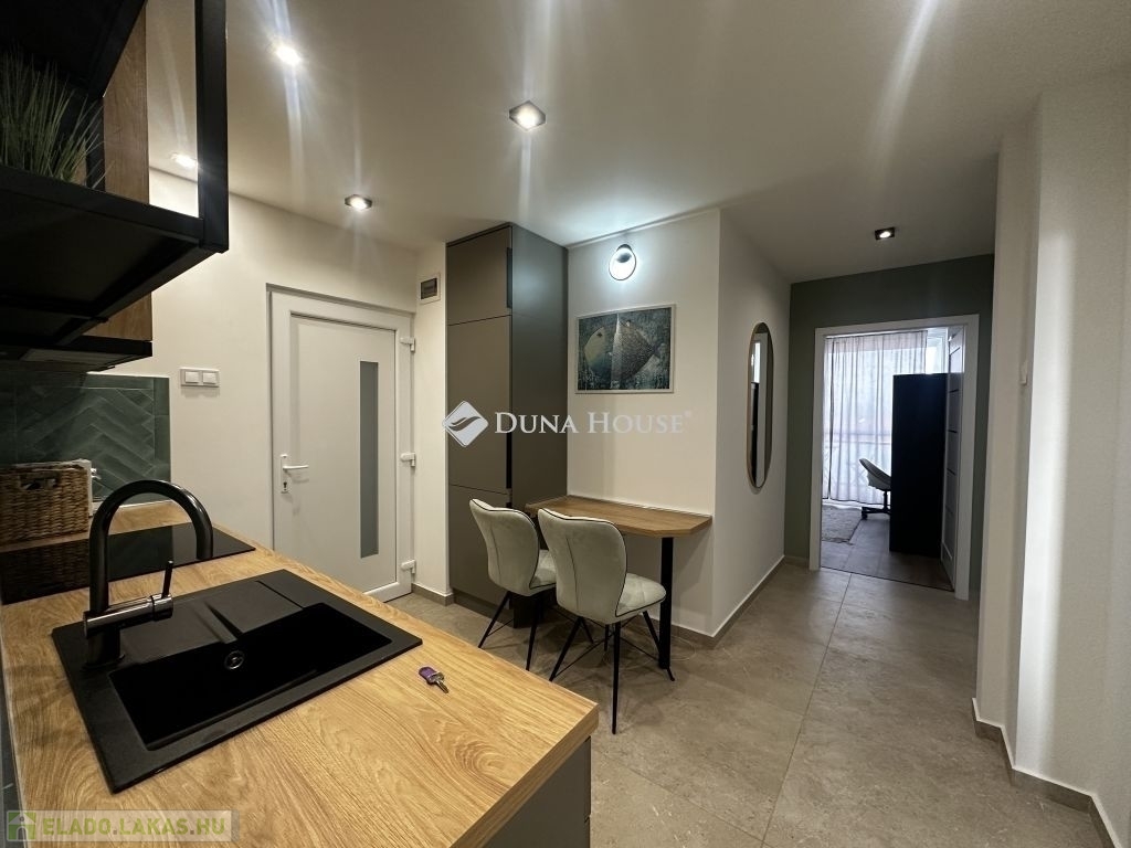 Exkluzív, teljeskörűen felújított lakás Pécs belvárosában befektetőknek és saját otthonnak egyaránt!Eladásra kínálok egy 64 m²-es, 7. emeleti, teljeskörűen felújított lakást Pécs szívében. Az ingatlan minden részletében igényesen átalakított, így modern, kényelmes otthont biztosít új tulajdonosának.A lakás jellemzői: új víz- és villanyvezetékek, álmennyezeti LED lámpák modern hangulatvilágítással, asztalos által készített, gépesített, egyedi konyhabútor, teljesen felszerelt és bútorozott állapot, 3 klíma a tökéletes hőérzetért, tágas, világos terek, minőségi burkolatok.A belvárosi elhelyezkedésnek köszönhetően minden fontos szolgáltatás, bolt, étterem és közlekedési csomópont könnyedén elérhető.
