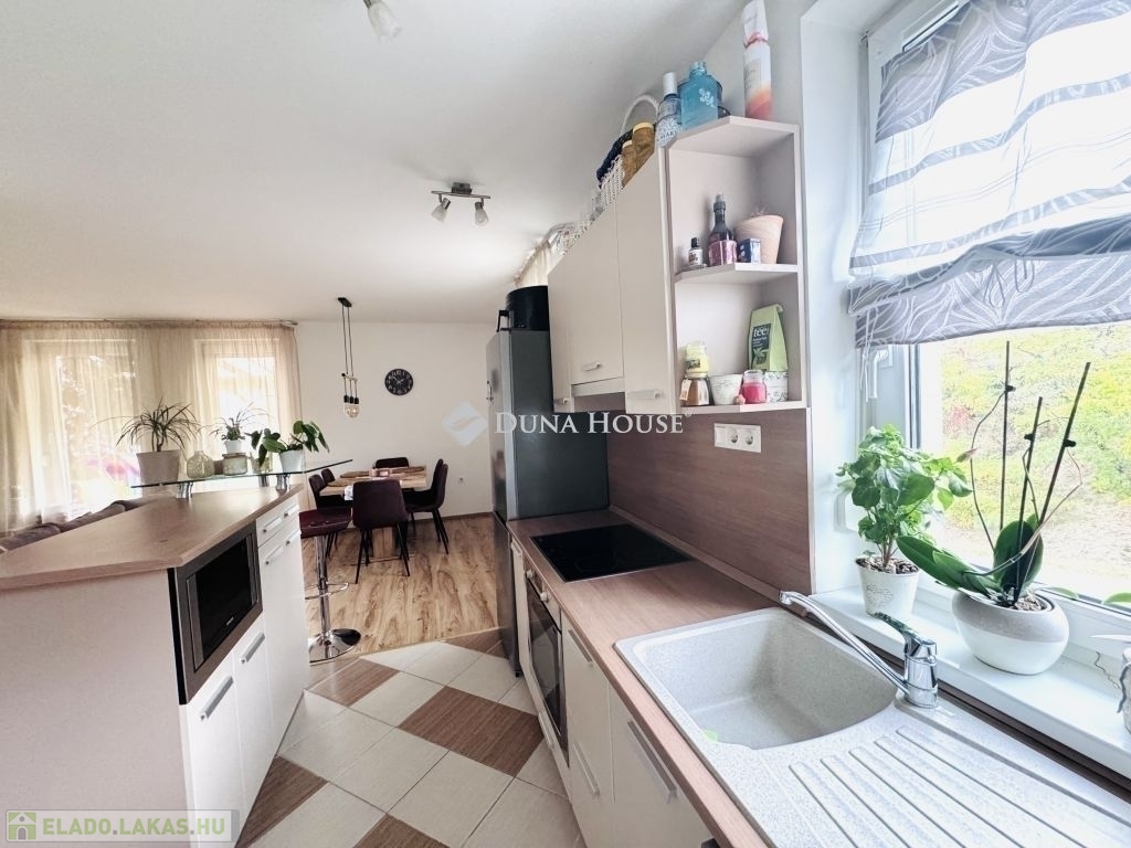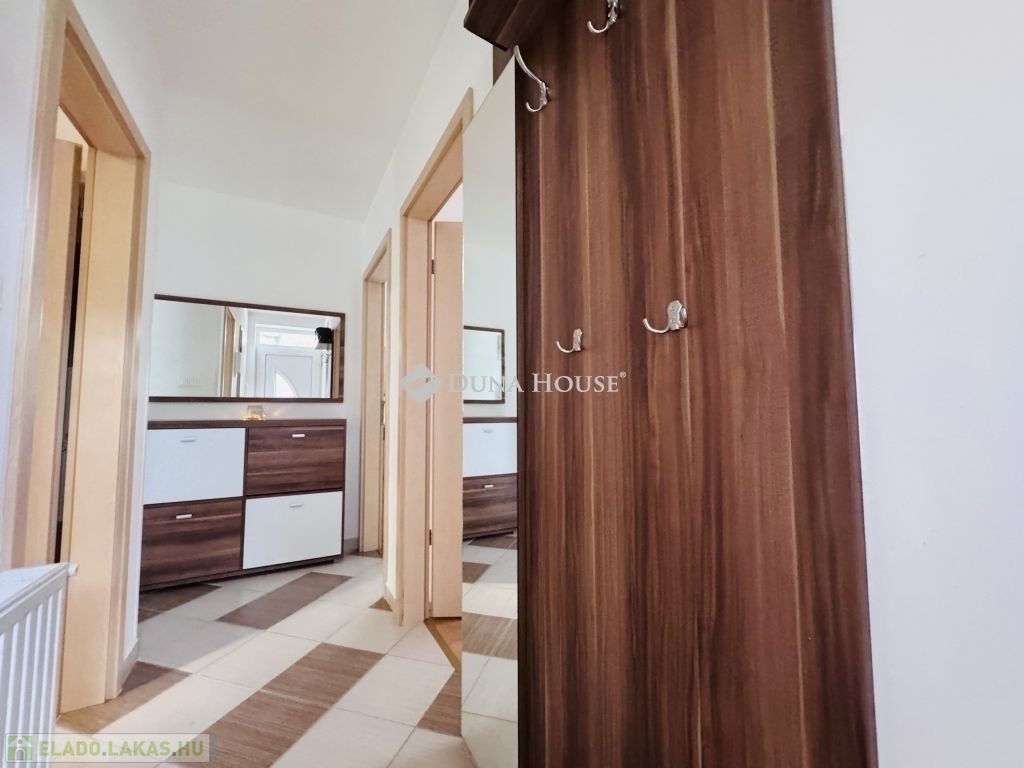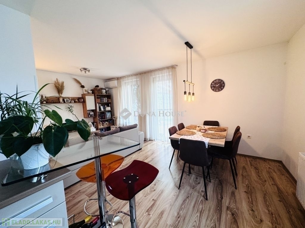 Eladó modern földszinti lakás nagy fedett terasszal és kertkapcsolattal Pécs, Rigóderi városrészPécs egyik kedvelt, csendes részén, a Rigóderi városrészben eladóvá vált egy 2008-ban épült, rendezett társasházföldszinti, fiatalosan berendezett, modern lakása.Az ingatlan amerikai konyhás nappaliból, két kényelmes hálószobából, külön fürdőből és WC-ből áll. A lakáshoz tartozik egy nagyméretű, fedett terasz, valamint egy kis, saját kertkapcsolat, ami tökéletes helyszín a pihenésre vagy baráti összejövetelekre.A lakás világos, jól szellőző, ízlésesen kialakított, azonnal költözhető állapotban van. A fűtés egyedi gázkazánnal történik, így a rezsi rendkívül kedvező. Emellett klíma is beszerelésre került, ami nyáron kényelmes hőmérsékletet biztosít. A lakóközösség barátságos és összetartó, a ház pedig csendes, rendezett környezetben található.A vételár tartalmaz egy saját udvari gépkocsibeállót, valamint a ház előtt további parkolási lehetőség is biztosított.Főbb jellemzők:2008-as építés, modern társasházFöldszinti, fedett teraszos, kertkapcsolatos lakás2 hálószoba + amerikai konyhás nappaliKülön fürdő és WCEgyedi gázfűtés, kedvező rezsiKlímával felszereltSaját parkoló + utcai parkolási lehetőségCsendes környezet, jó lakóközösségIdeális választás fiatal pároknak, kisgyermekes családoknak, vagy akár befektetésre is kiváló lehetőség.