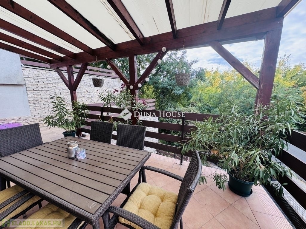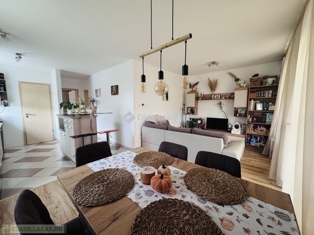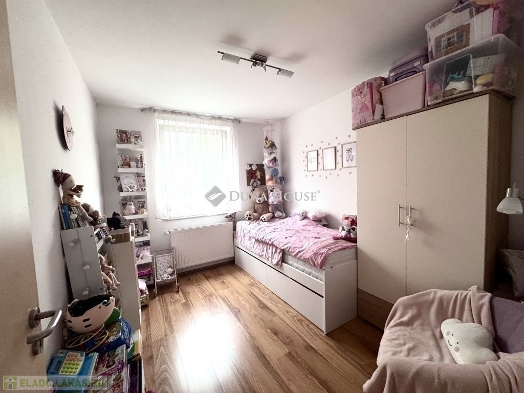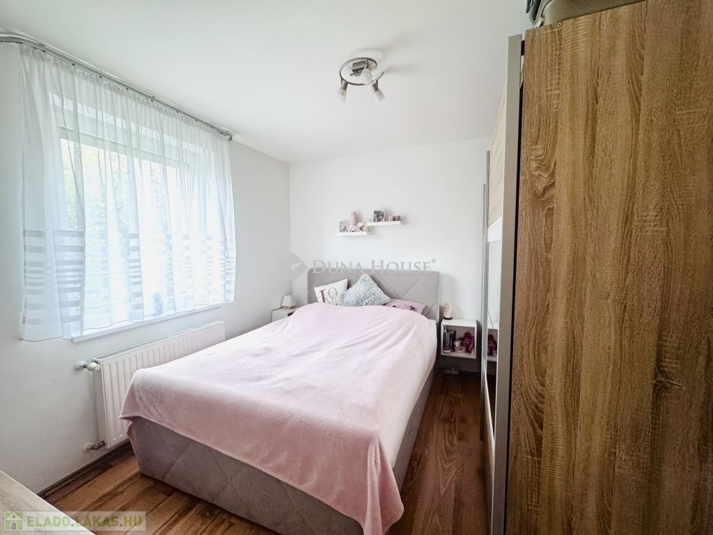 Eladó modern földszinti lakás nagy fedett terasszal és kertkapcsolattal Pécs, Rigóderi városrészPécs egyik kedvelt, csendes részén, a Rigóderi városrészben eladóvá vált egy 2008-ban épült, rendezett társasházföldszinti, fiatalosan berendezett, modern lakása.Az ingatlan amerikai konyhás nappaliból, két kényelmes hálószobából, külön fürdőből és WC-ből áll. A lakáshoz tartozik egy nagyméretű, fedett terasz, valamint egy kis, saját kertkapcsolat, ami tökéletes helyszín a pihenésre vagy baráti összejövetelekre.A lakás világos, jól szellőző, ízlésesen kialakított, azonnal költözhető állapotban van. A fűtés egyedi gázkazánnal történik, így a rezsi rendkívül kedvező. Emellett klíma is beszerelésre került, ami nyáron kényelmes hőmérsékletet biztosít. A lakóközösség barátságos és összetartó, a ház pedig csendes, rendezett környezetben található.A vételár tartalmaz egy saját udvari gépkocsibeállót, valamint a ház előtt további parkolási lehetőség is biztosított.Főbb jellemzők:2008-as építés, modern társasházFöldszinti, fedett teraszos, kertkapcsolatos lakás2 hálószoba + amerikai konyhás nappaliKülön fürdő és WCEgyedi gázfűtés, kedvező rezsiKlímával felszereltSaját parkoló + utcai parkolási lehetőségCsendes környezet, jó lakóközösségIdeális választás fiatal pároknak, kisgyermekes családoknak, vagy akár befektetésre is kiváló lehetőség.