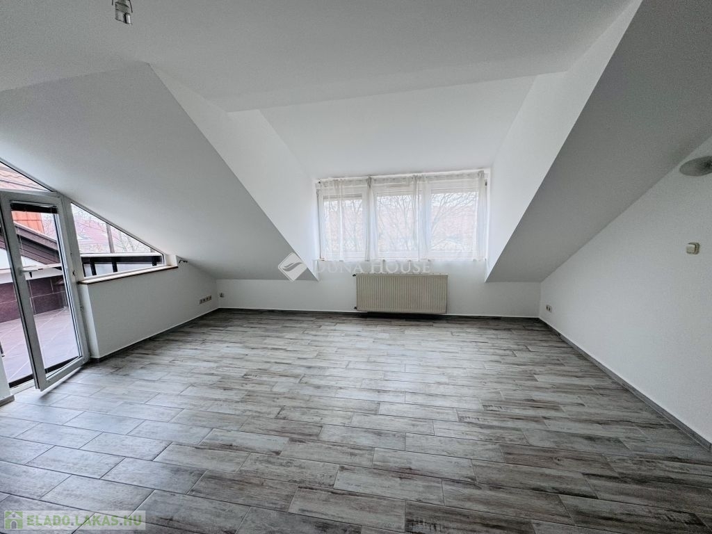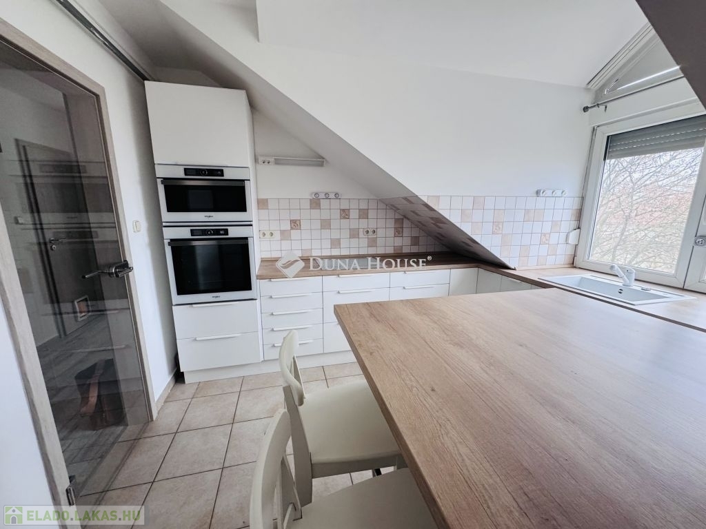 Eladó tetőtéri lakás Pécs közkedvelt Uránváros városrészében!Pécs egyik legkedveltebb, zöldövezeti részén, Uránvárosban eladóvá vált egy 1990-ben épült, kiváló állapotú, egyedi gázfűtéses tetőtéri lakás. Az ingatlan elrendezése és tágas tereinek köszönhetően ideális választás akár családok számára is.A lakás nettó alapterülete jól átgondolt elrendezésű:két különnyíló hálószoba,egy tágas, világos nappali,külön konyha és étkező,fürdőszoba és külön WC,kamra,dolgozósarok a gardrób részeként.A lakáshoz tartozik egy kb. 15 m²-es nagyméretű terasz, amely kiváló helyszínt biztosít pihenésre vagy baráti összejövetelekre.A lakás fenntartási költsége rendkívül kedvező, a fűtést és meleg vizet egyedi gázkazán biztosítja.A minőségi konyhabútor és beépített konyhai gépek a vételár részét képezik, ahogy a jelenlegi bútorzat is megegyezés tárgyát képezi.Az ingatlanhoz saját tároló is tartozik, a ház pedig rendezett, zöldövezeti környezetben található, jó szomszédsággal és kiváló infrastruktúrával: boltok, iskola, óvoda, buszmegálló néhány perces sétával elérhető.