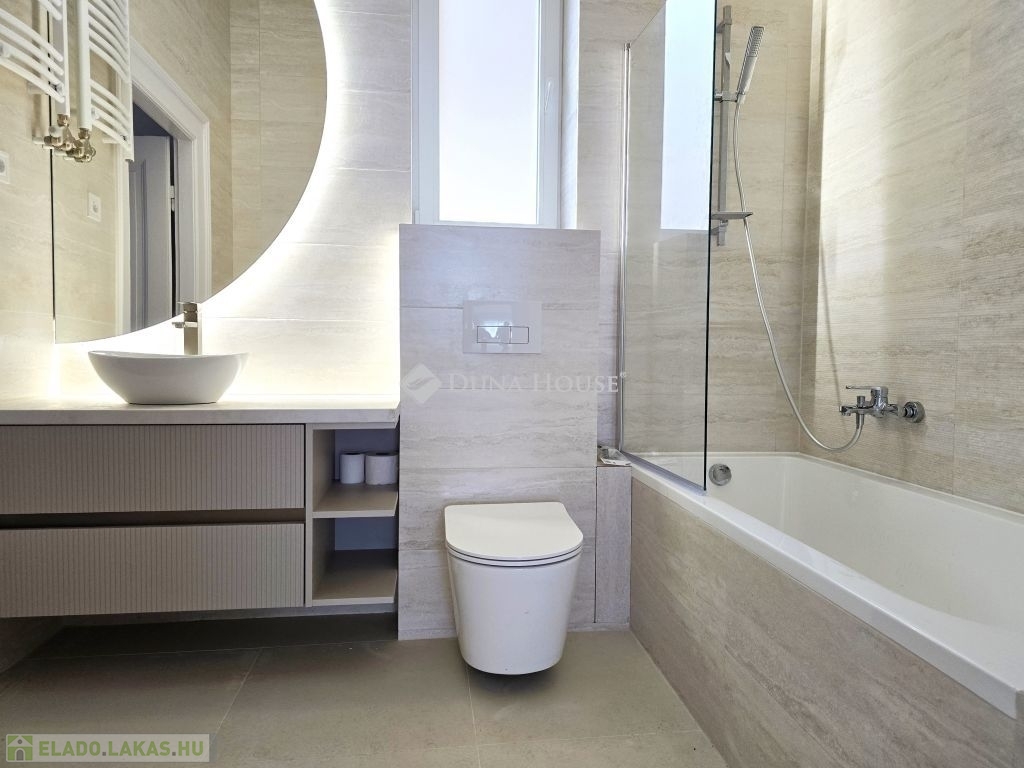 ;lakrészenkénti külön mérőórák kialakítása, új víz-és villany vezetékhálózat, fűtésrendszer, burkolatok, szaniterek, műanyag nyílászárók-ELEKTROMOS ALU REDŐNYÖKKEL, felújított beltéri fa polgári ajtók, minőségi konyha bútor gépekkel, KLÍMA, friss festés.