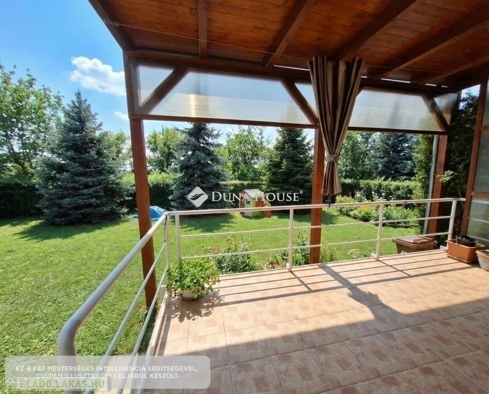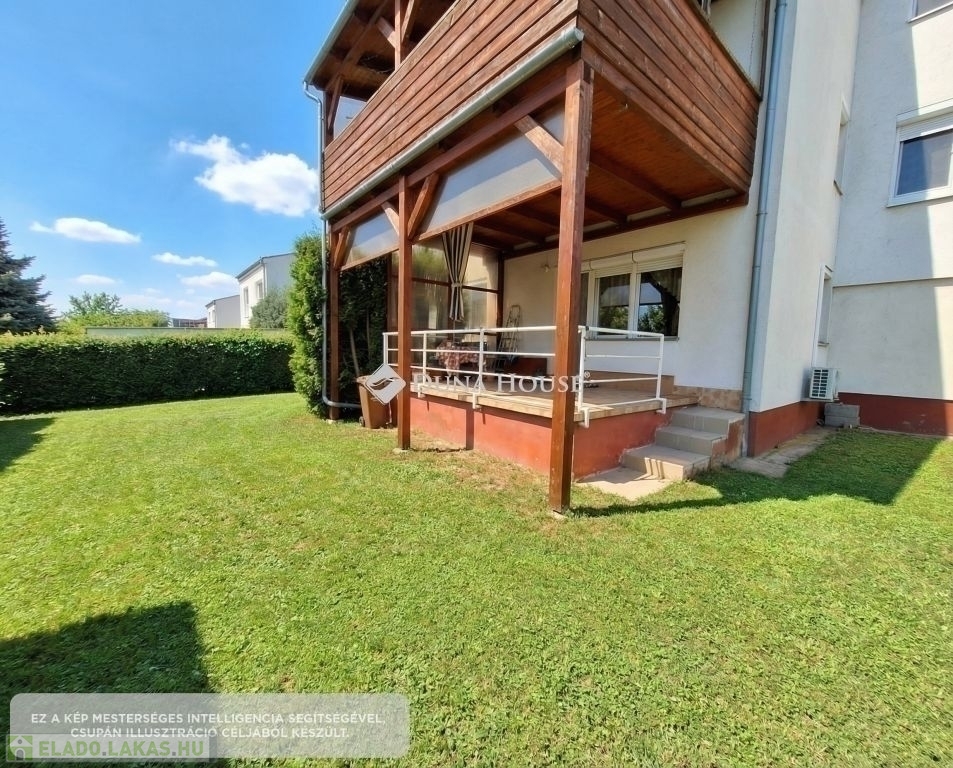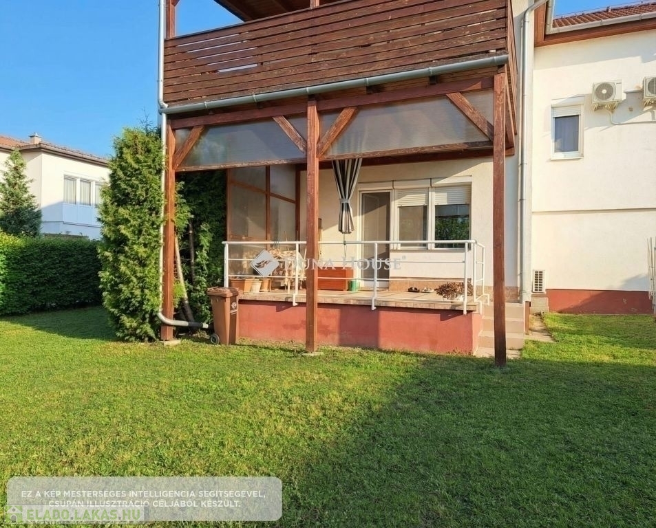 Az ingatlan műanyag nyílászárókkal, gáz-cirkó fűtéssel és riasztórendszerrel felszerelt. A nappaliból közvetlen kijárat nyílik a 12 m²-es fedett teraszra, ahonnan élvezhető a közös kert használata is.