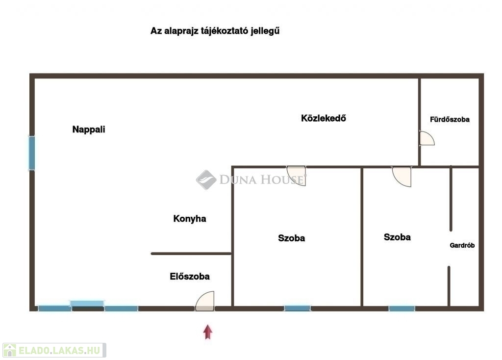 Az ingatlan kiváló elrendezésű:2 külön nyíló hálószoba,egy kisméretű gardrób,fürdőszoba WC-vel,valamint egy amerikai konyhás nappaliétkező, amely tágas és világos életteret biztosít.