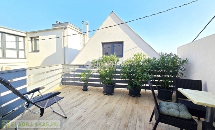 Belvárostól pár perc sétára a Tettyén eladó egy 97 nm alapterületű, amerikai konyha-nappali+2 tágas szoba elosztású, belső 2 szintes, teljeskörűen felújított, klímás, gáz kondenzációs kazánnal fűtött, tégla lakás, felső szinten egy saját terasszal, alsó szinten pedig közös udvarral és terasszal.Az ingatlan egyedi elosztása lehetővé teszi. hogy a felső szintet lakásként, az alsó szintet pedig iroda vagy akár vállakozás céljára hasznosítsák!A lakás tehermentes és 3-4 hónapon belül költözhető!I.ár: 84,9M Ft