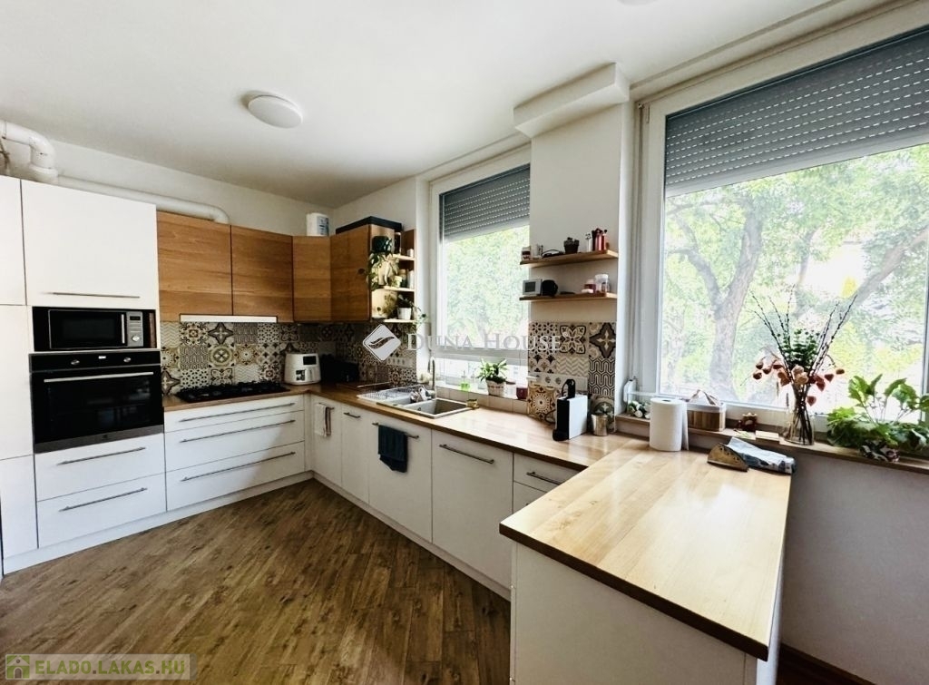 PÉCS-MECSEKOLDALONBelvárostól 5 percre gyalog,ELADÓ egy 4 lakásos társasházban egy gyönyörűen felújított 91 nm-es lakás, GarázzsalAz ingatlan belső kétszintes,2021-ben teljeskörű felújításon esett át mely a következőket tartalmazza:teljes elektromos hálózatcsere,rejtett fűtéscsövek,háromrétegű, hő- és hangszigetelő nyílászárók,az emeleten solar hővédő üvegezés készült.Az alsó szinten világos nappali, egyedi, tömör bükkfából készült konyha étkezővel és kamrával, előszoba, valamint külön vendég mosdó található.Az emeleten két hálószoba valódi fa parkettával, modern fürdőszoba szauna előkészítéssel, dupla mosdóval és fűtött tükörrel, valamint kazánház/tároló kapott helyet.A 26 m²-es garázs, elektromos autótöltővel és külön almérővel, melynek irányára: 12M Ft, a garázs előtt még egy autónak van hely parkolni.Környéken: iskola, óvoda, bolt, rendelő is elérhető csupán pár percre gyalogosan.További értékes információkért keressen bizalommal.