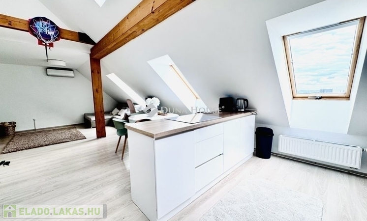 Eladó fiatalos, belső kétszintes lakás PatacsonAmerikai konyha nappali, 3 hálószoba, alacsony rezsi, zárt udvar!Patacson, egy 2019-ben épült, modern társasházban eladóvá vált egy kiváló elrendezésű, belső kétszintes, 3 hálószobás lakás. Az ingatlan amerikai konyhás nappalival rendelkezik, stílusosan, fiatalosan berendezett, így ideális választás lehet fiatal pároknak, családoknak vagy akár befektetésnek is.A lakás egyik legnagyobb előnye a rendkívül alacsony rezsi, amely a társasház korszerű építési megoldásainak köszönhetően hosszú távon is gazdaságos fenntartást biztosít.A társasházhoz tartozik egy zárt belső udvar, amelyet a lakók közösen használhatnak.Az ingatlanhoz jutányos áron garázs bérelhető, amelynek bérleti joga továbbvihető az új tulajdonos számára is.A parkolás a ház előtt ingyenes .Költözzön egy modern, kényelmes és fiatalos otthonba Patacs egyik legjobb részén!