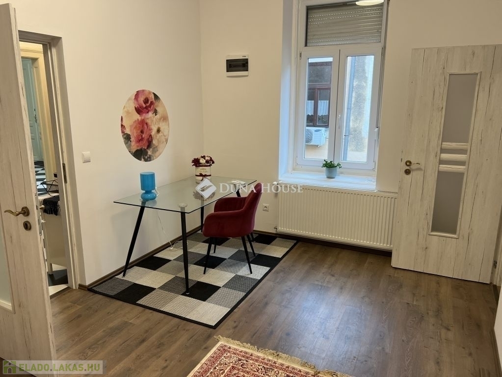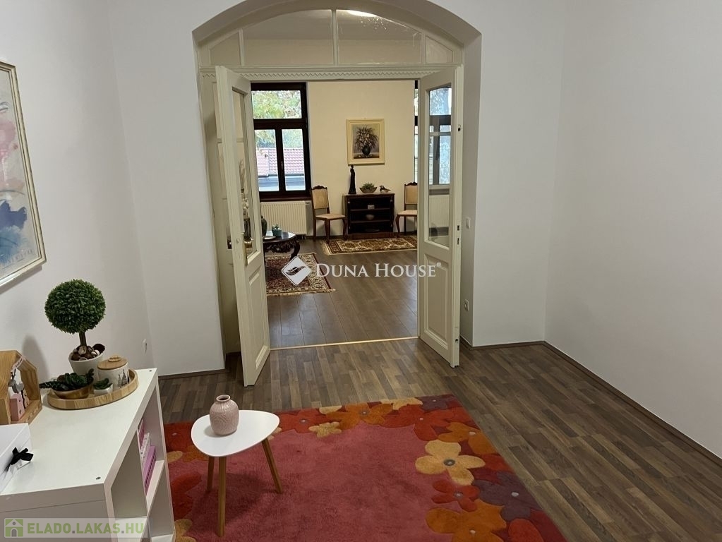 Eladó tágas, polgári lakás Pécs belvárosában, a Szabadság utcában – 104 m², erkéllyel, akár irodának, rendelőnek vagy szalonnak is ideális!Pécs frekventált részén, a Szabadság utcában kínálunk megvételre egy 104 m²-es, polgári stílusú, kiváló elrendezésű ingatlant. Az első emeleten található lakás tágas tereinek, nagy belmagasságának és jól tagolt alaprajzának köszönhetően nemcsak otthonnak, hanem irodának, ügyvédi irodának, rendelőnek, kozmetikai vagy egészségügyi szalonnak is tökéletes választás lehet.Az ingatlan elosztása: 3 nagy szoba, külön konyha-étkező, fürdőszoba, külön WC, valamint egy 6 m²-es erkély, amely az udvar felé néz. A lakás világos, reprezentatív megjelenésű, könnyen alakítható az új tulajdonos igényei szerint.Fűtése Viessmann gázkazánnal megoldott, az épület rendezett, a környék pedig könnyen megközelíthető, akár tömegközlekedéssel, akár autóval.További előny: az ingatlanhoz opcionálisan teremgarázs-hely is megvásárolható, ami ritkaság a belvárosban.Ha Ön egy jól megközelíthető, elegáns helyszínt keres vállalkozása számára, vagy értékálló belvárosi otthont, ez az ingatlan remek lehetőség!